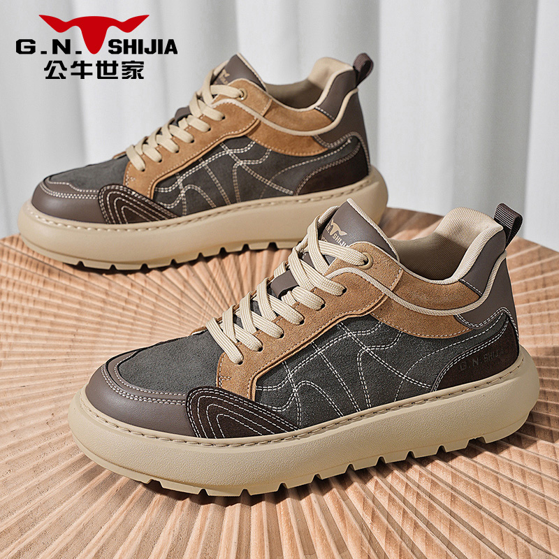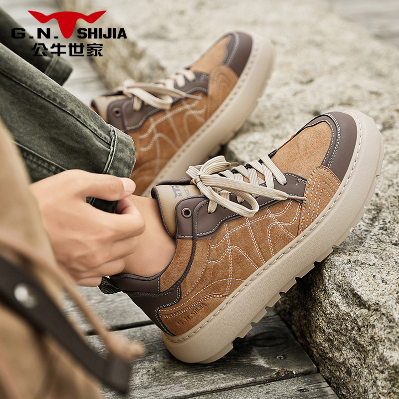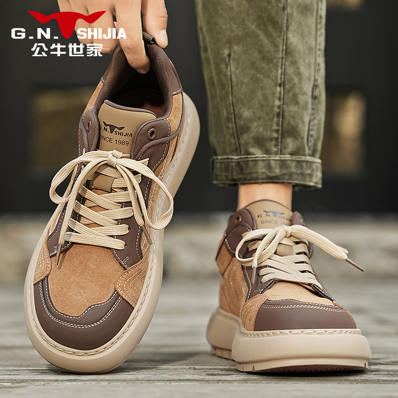 靴子 真皮防水厚底增高工装 森马马丁靴男秋季 高帮百搭休闲白色板鞋