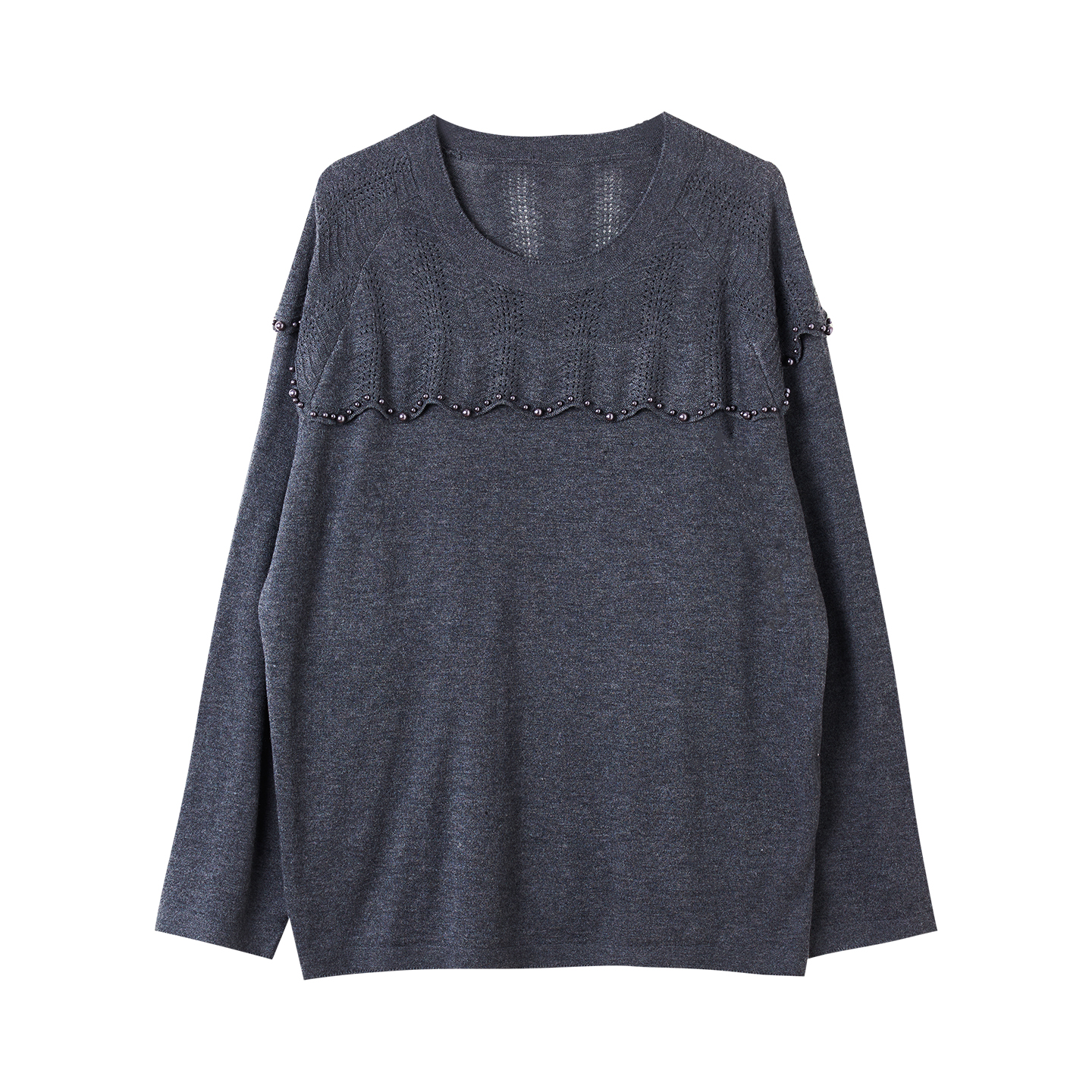打底衫 宝诗黎圆领钉珠慵懒针织衫 休闲长袖 简约宽松大码 女2025秋季