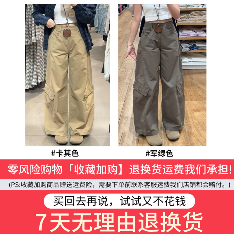 高腰显瘦小个子宽松直筒弯刀阔腿裤 复古工装 新款 女2025秋季 运动裤