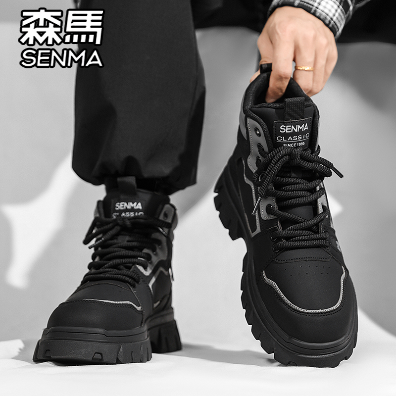 冬季 加绒靴子百搭高帮休闲皮鞋 男鞋 潮流男士 韩版 马丁靴男2025新款
