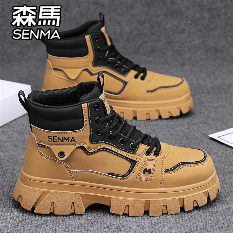 2025新款 厚底爆款 秋季 靴子登山男鞋 大黄靴 户外工装 回力马丁靴男款