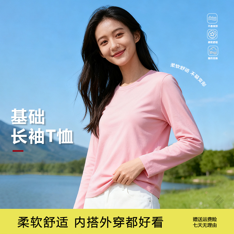 7A抑菌 儿童纯棉圆领宝宝秋装 女童秋季 t恤2025新款 上衣 撞色长袖