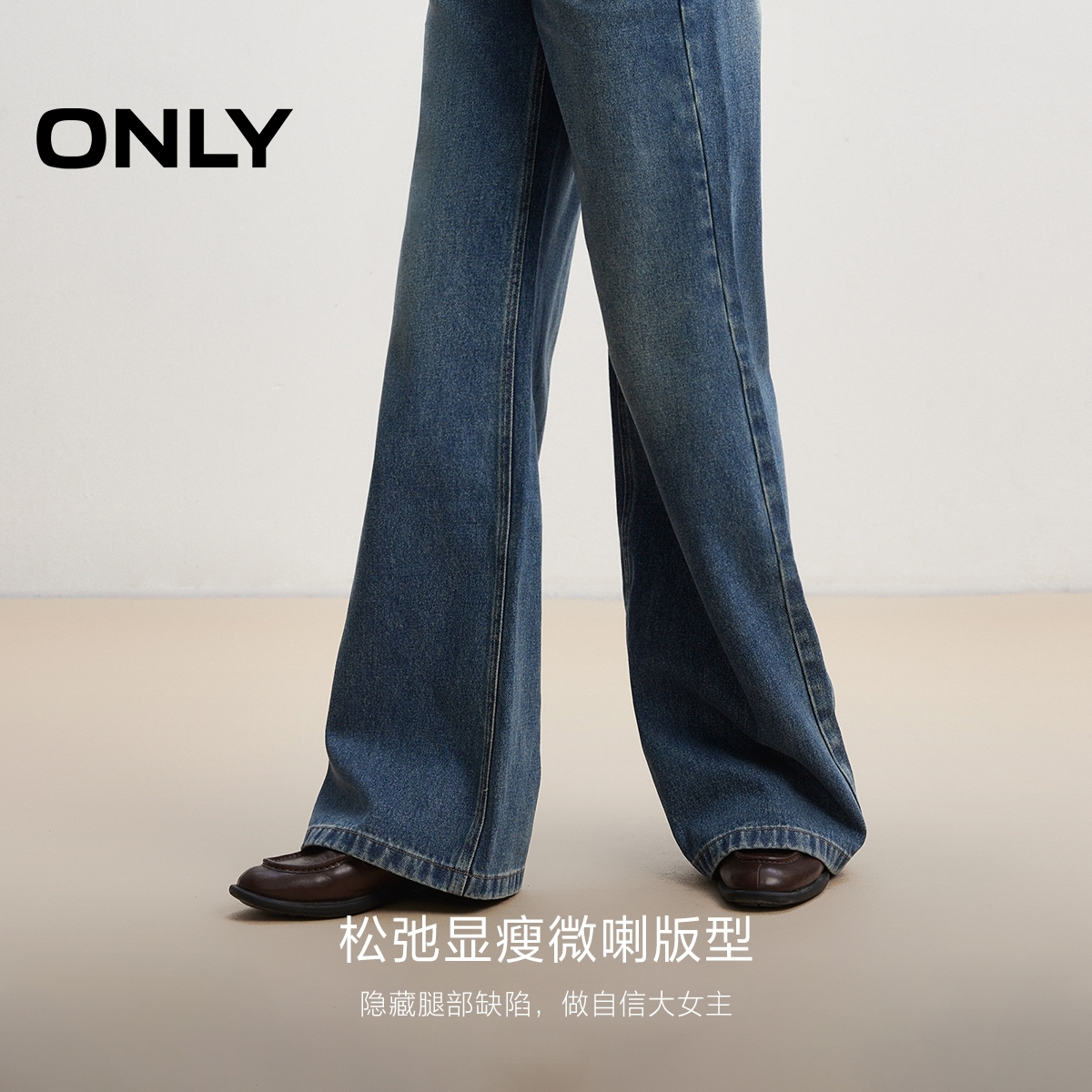 女2025新款 子女装 秋季 复古喇叭裤 504897 铆钉毛边微喇裤 三福牛仔裤