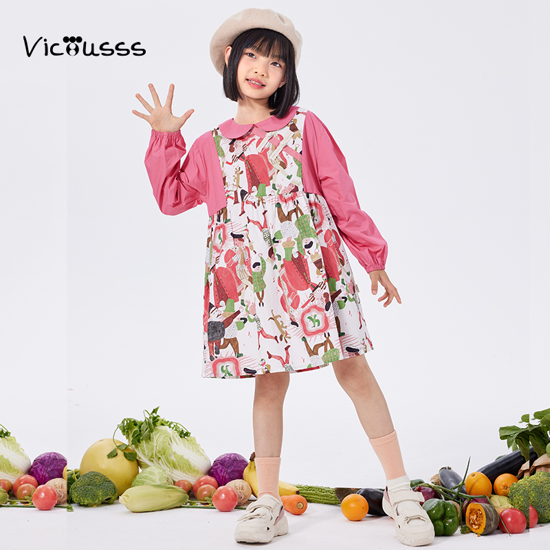 viciusss丸社女童连衣裙2025新款 儿童纯棉洋气公主裙生日礼服 秋装