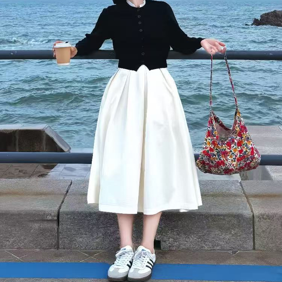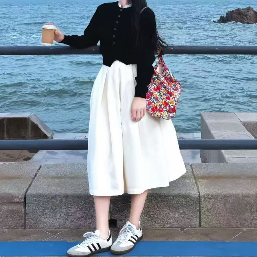 乐町蝴蝶结背心长裙冬季 基础简约黑色连衣裙收腰大裙摆针织裙 新款