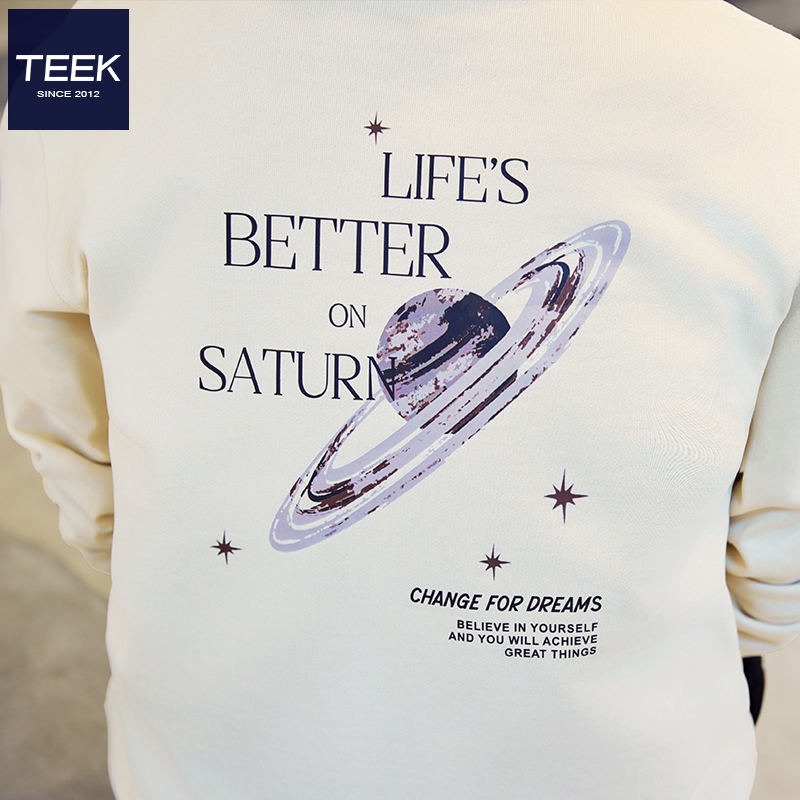 宇宙星球长袖 卫衣 T恤中学生小众潮牌衣服 纯棉奶杏色男装 TEEK秋季