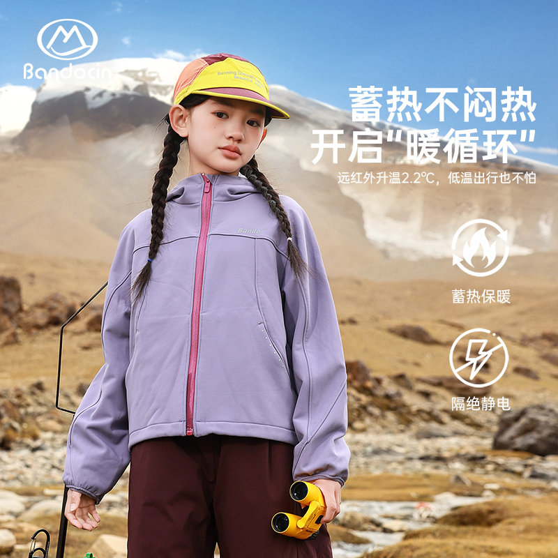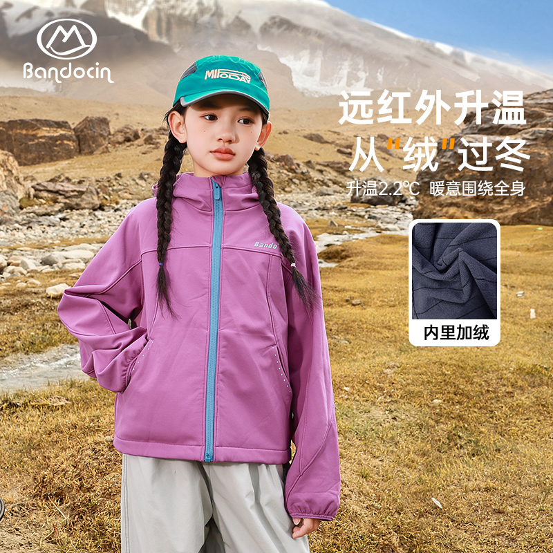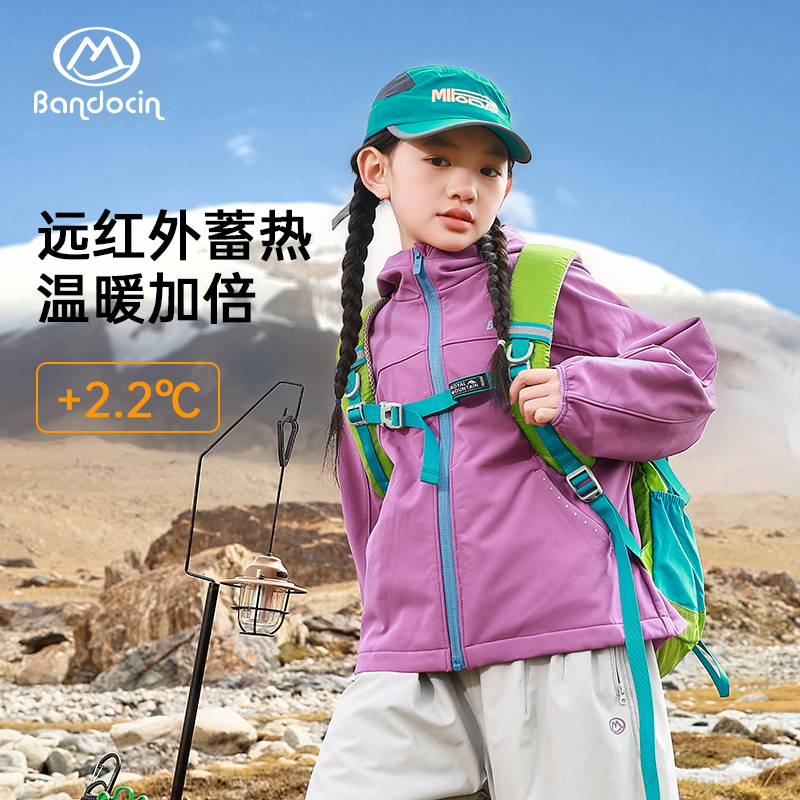 洋气新款 半度闲女童加绒软壳外套秋冬装 儿童加厚潮 热能黑科技