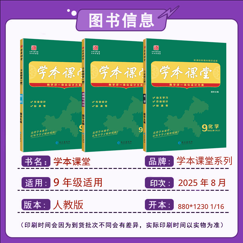 测评教学评一体化设计方案长江出版 初中9年级同步课时作业单元 社 学本课堂九年级上册全一册化学政治道德历史人教版 2025版