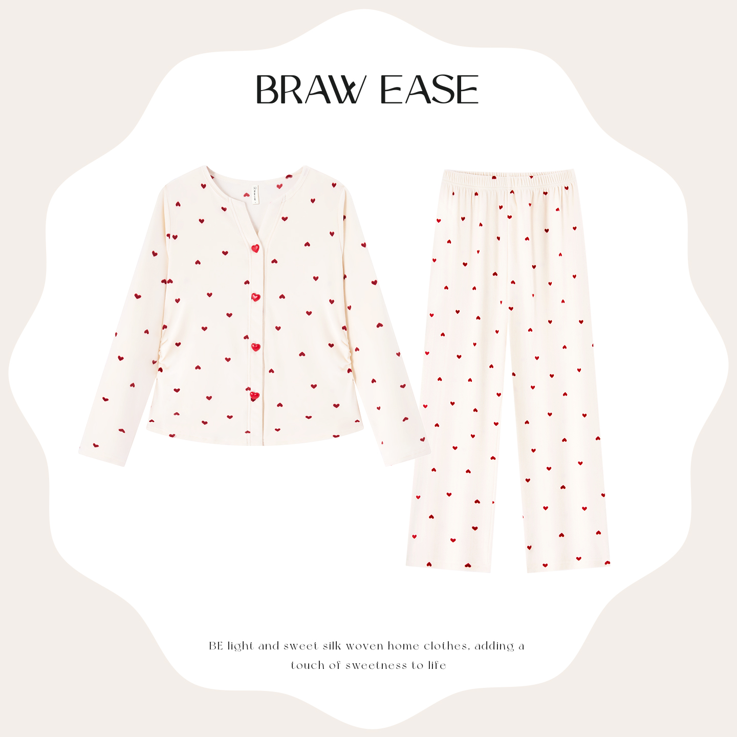 BE海岛绒睡衣女冬季 薄绒法兰绒女家居服牛奶绒冬天珊瑚绒 爱心长袖