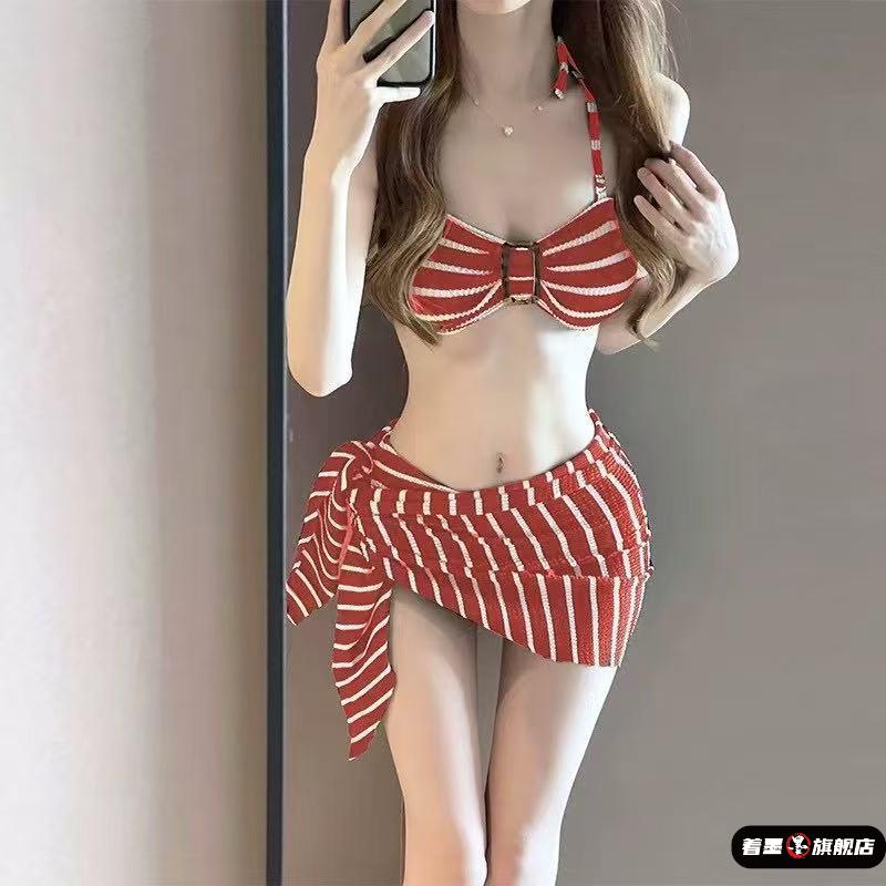比基尼泳衣女2025新款 三件套高级感欧美条纹性感小胸海边度假温泉