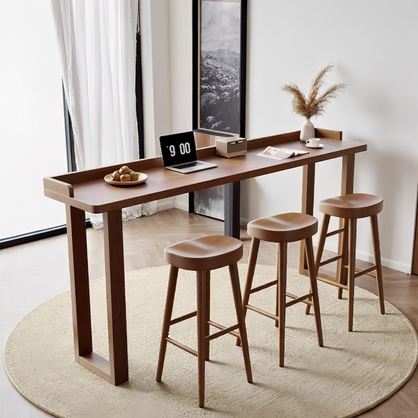 实木吧台桌椅组合阳台休闲小书桌家用靠墙窄桌长条桌沙发后窄条桌
