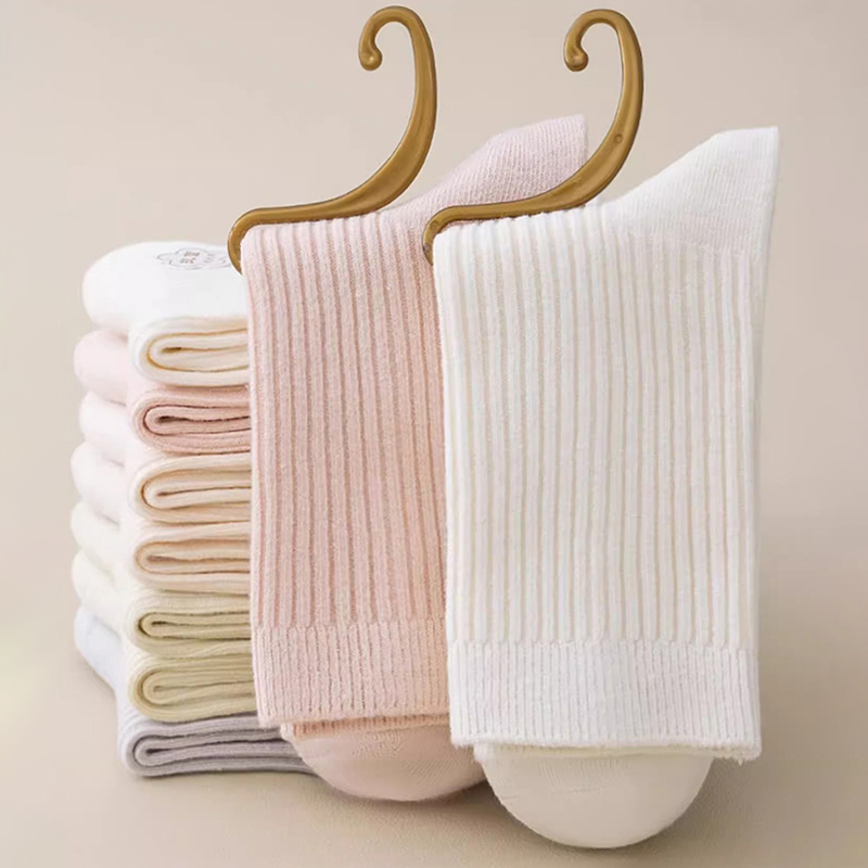 女士无骨月子袜白色中筒全棉袜 纯棉防臭短袜2025新款 袜子女款 秋季
