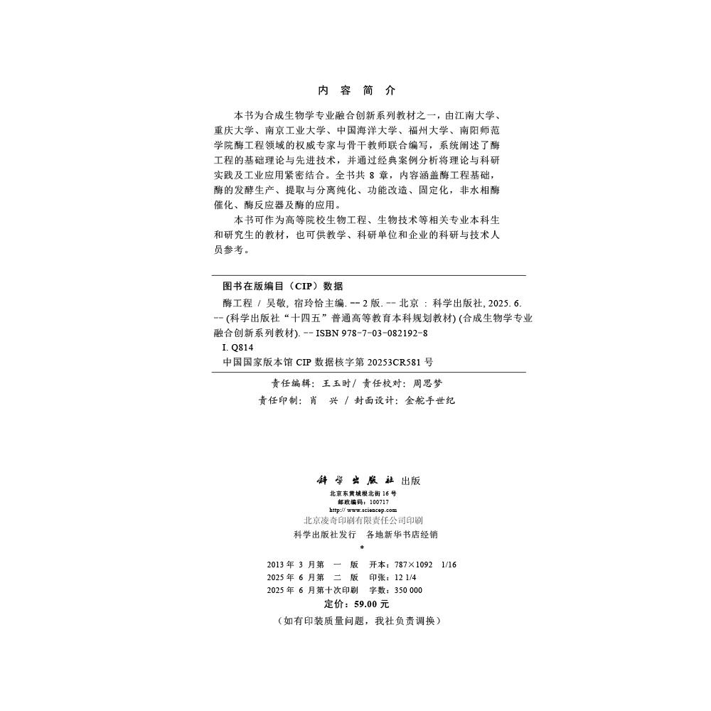 宿玲恰 吴敬 酶工程 第二版