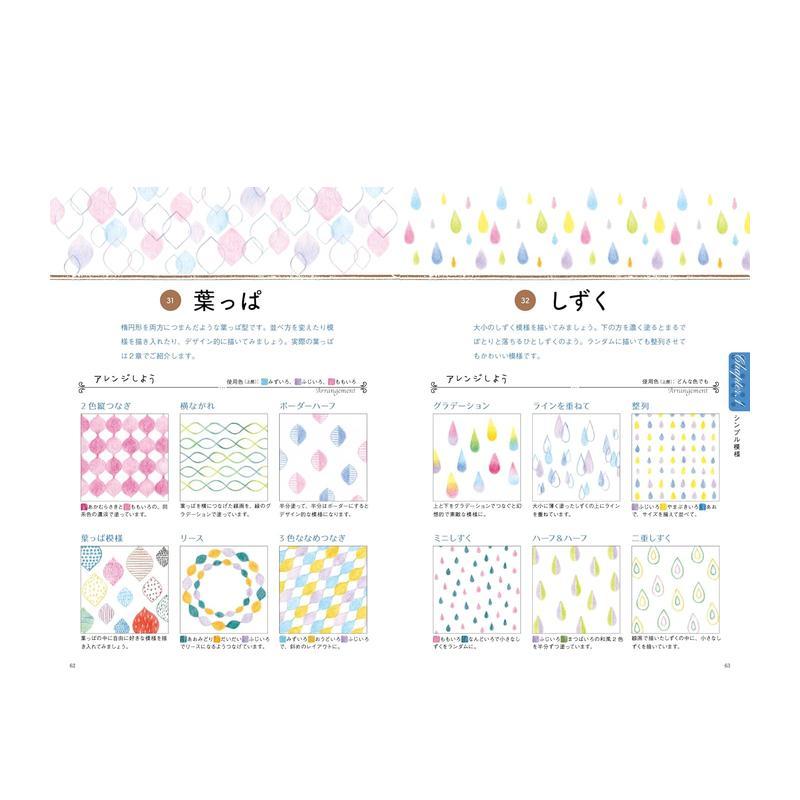 日文艺术插画技法教程创作日版 色 彩色铅笔图案 书籍花と葉っぱとかわいい飾り 图书外版 进口原版 饰 植物图案可爱装 100款 现货