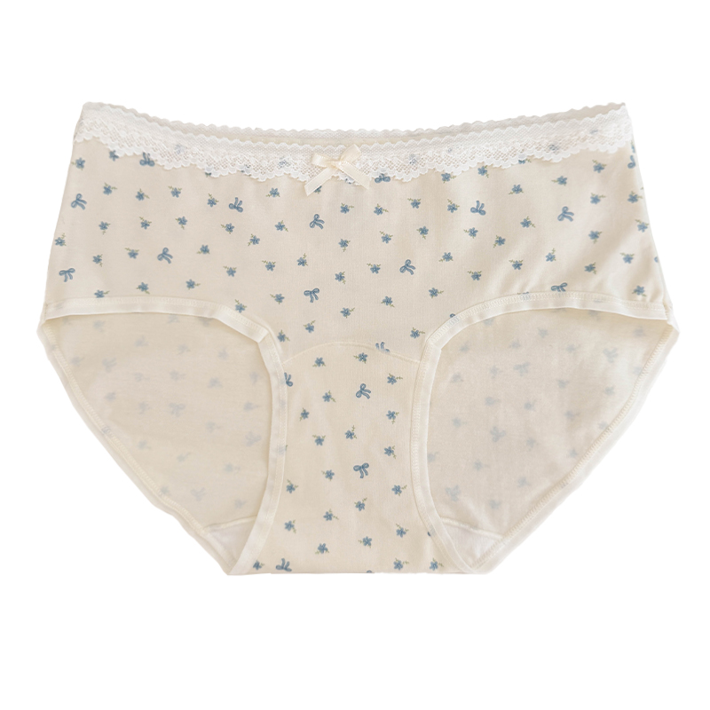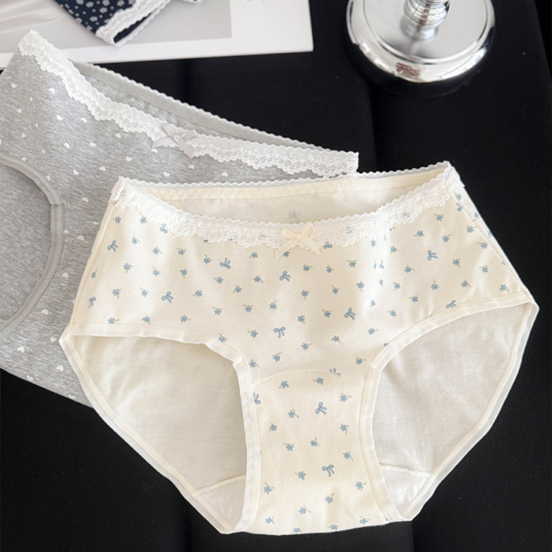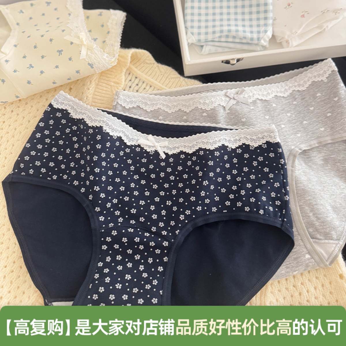 红豆女士内裤 纯棉全棉裆抗菌中腰少女蕾丝甜美可爱印花女生三角裤
