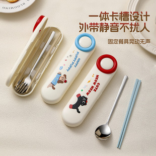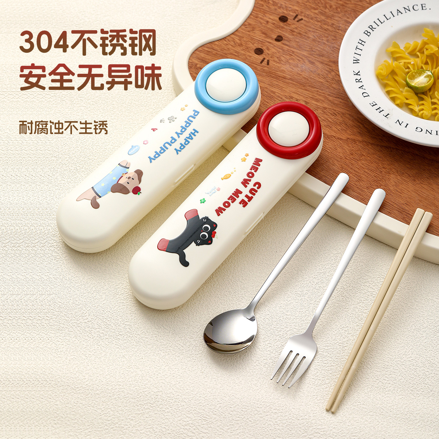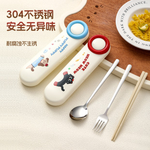 不锈钢筷子勺子套装 一人用便携儿童餐具盒上班族小学生筷子收纳盒