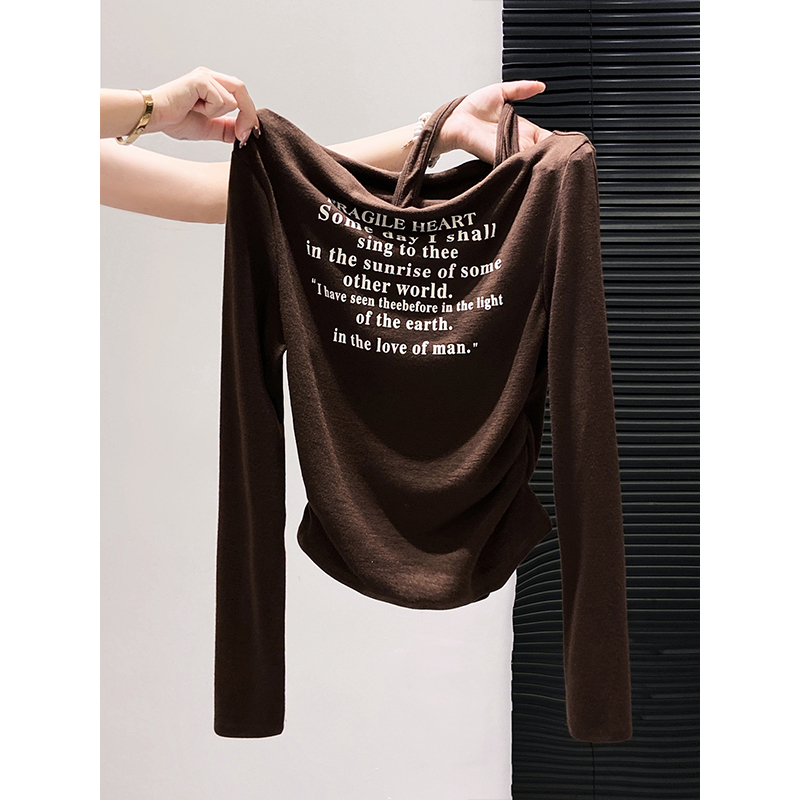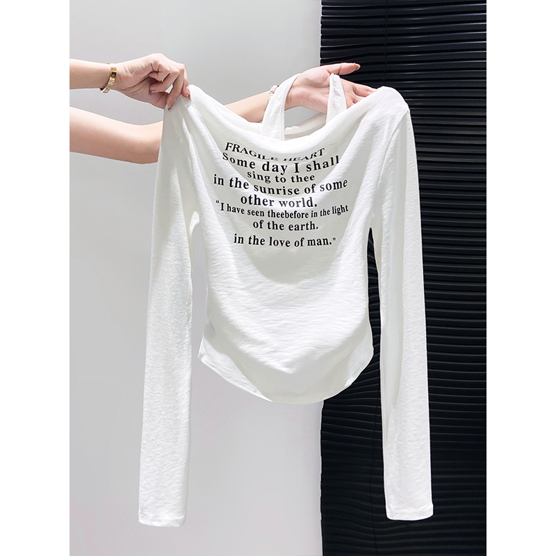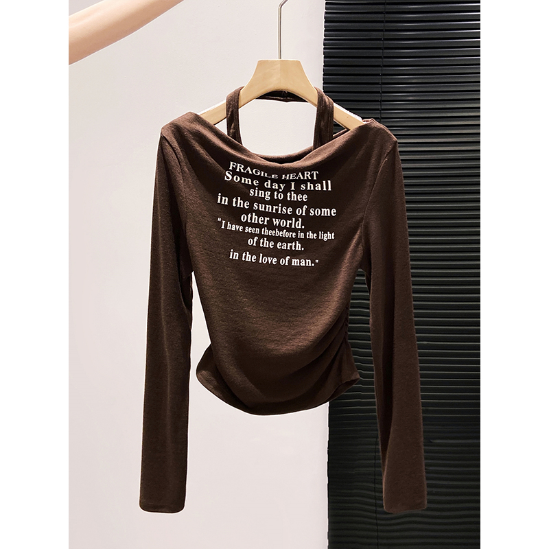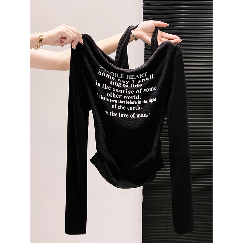 显瘦短款 美式 修身 t恤女2025早秋新款 露肩上衣 辣妹挂脖一字领长袖
