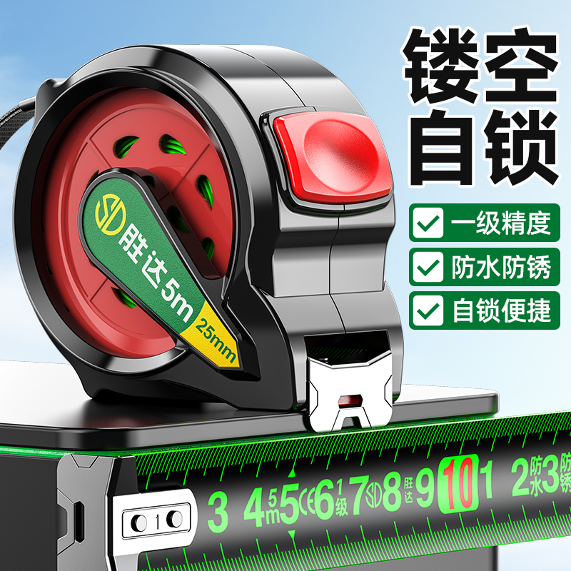 胜达卷尺荧光镂空测量尺米尺3米5米10米加厚加硬家用盒尺钢卷尺子