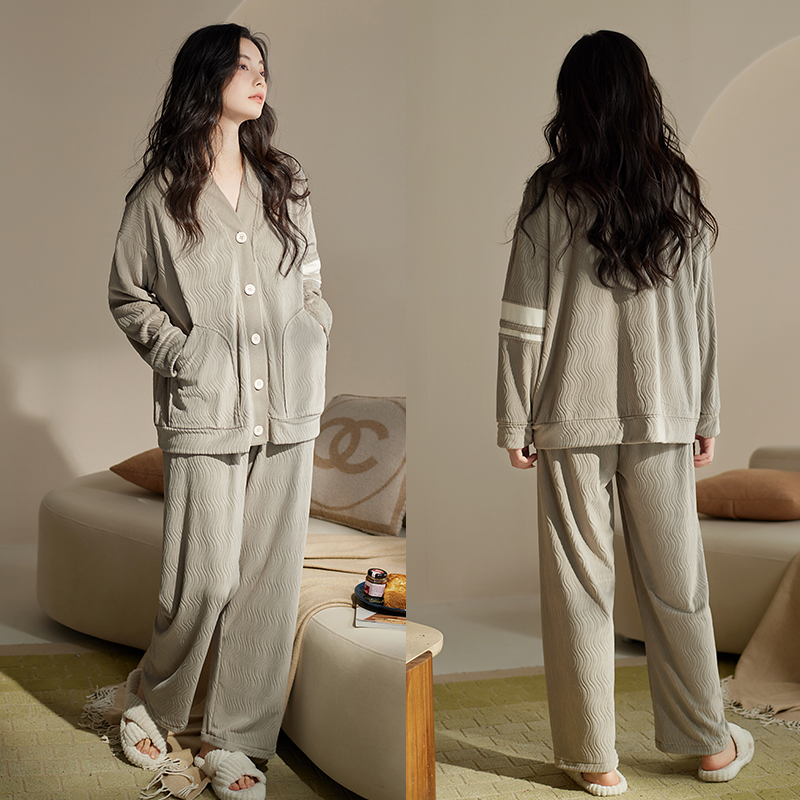 加绒加厚珊瑚绒海岛绒薄绒可外穿家居服套装 轩靓25新款 睡衣女冬季