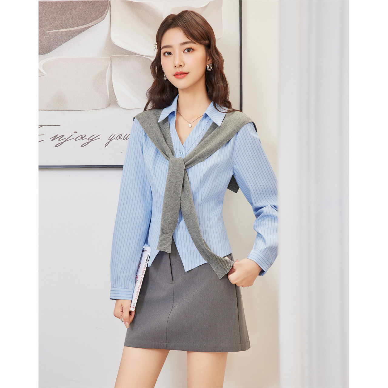 新款 ELLE法式 女2025秋装 洋气减龄条纹衬衫 设计感宽松小众上衣 时尚