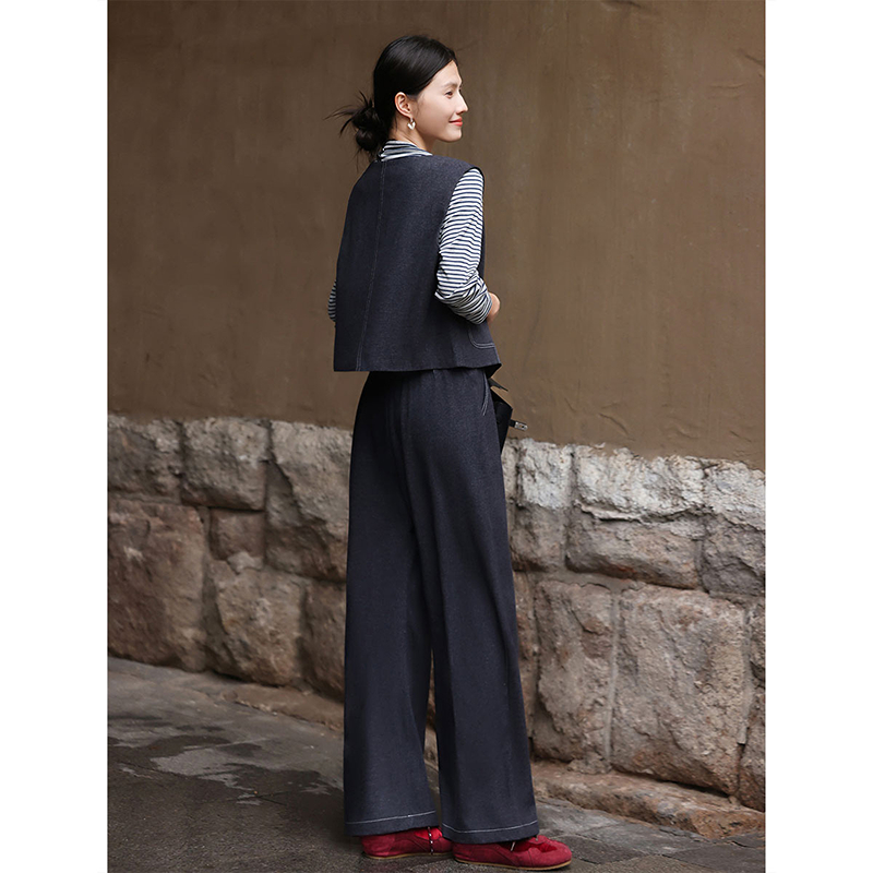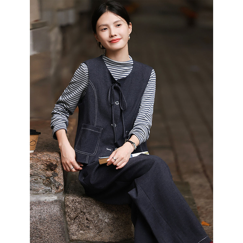 新款 女装 个性 三件套装 通勤职场风休闲马甲条纹T恤长裤 2025年秋季
