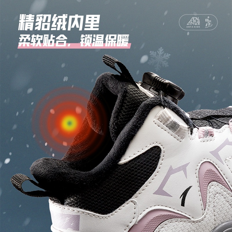 上新保暖防滑耐磨中大童二棉高帮童鞋 安踏儿童女大童棉鞋 2025冬款