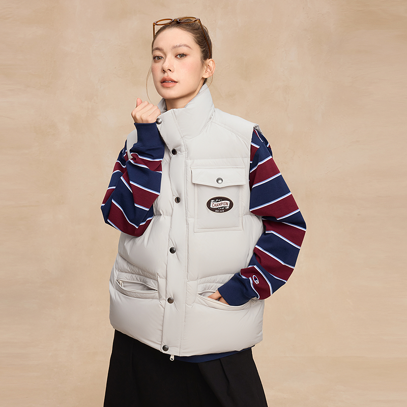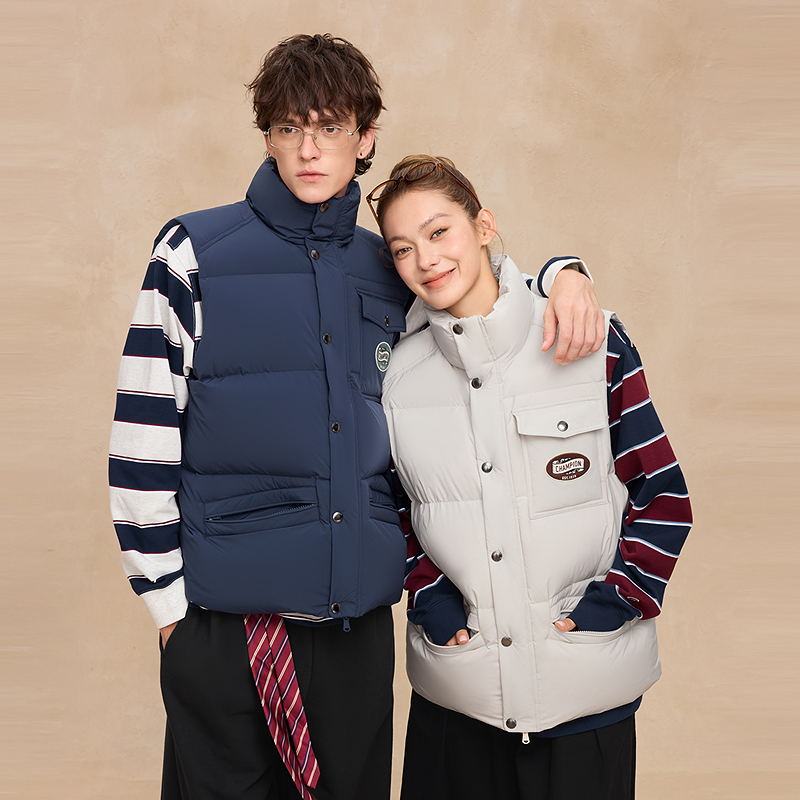 立领秋 潮牌背心休闲风女美式 Champion冠军羽绒马甲男2025冬季 新款