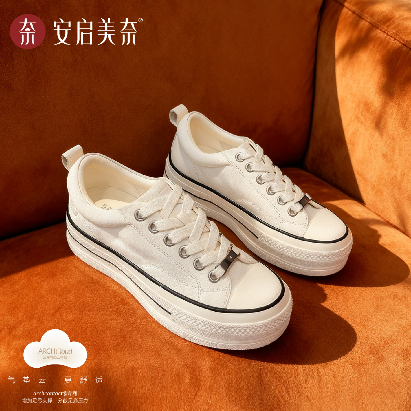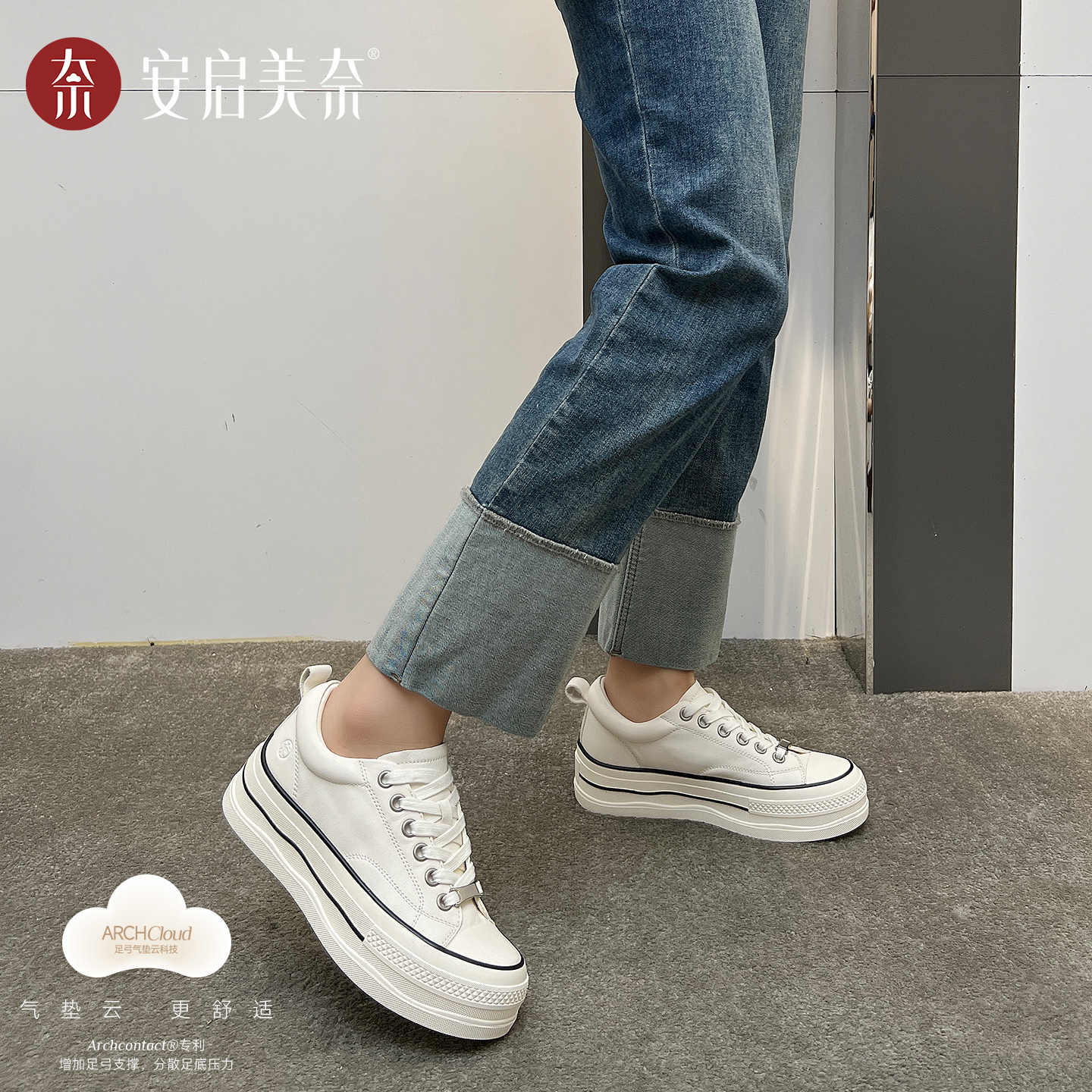 散步旅游鞋 安启美奈气垫云新款 厚底百搭系带小白鞋 休闲鞋 春秋时尚