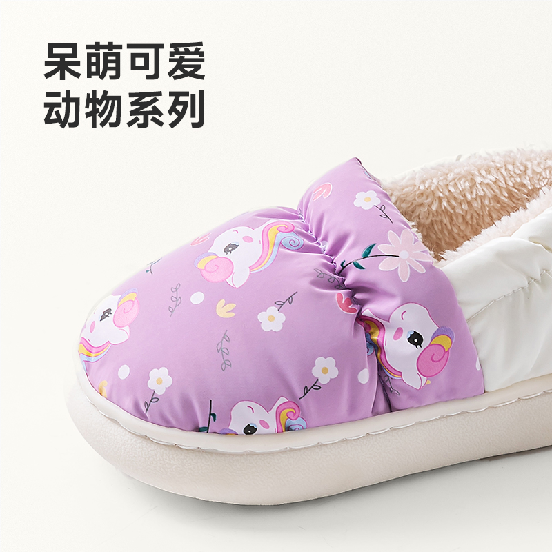 儿童棉拖鞋 秋冬中大童保暖加绒加厚软底防滑防水羽绒居家宝宝棉鞋