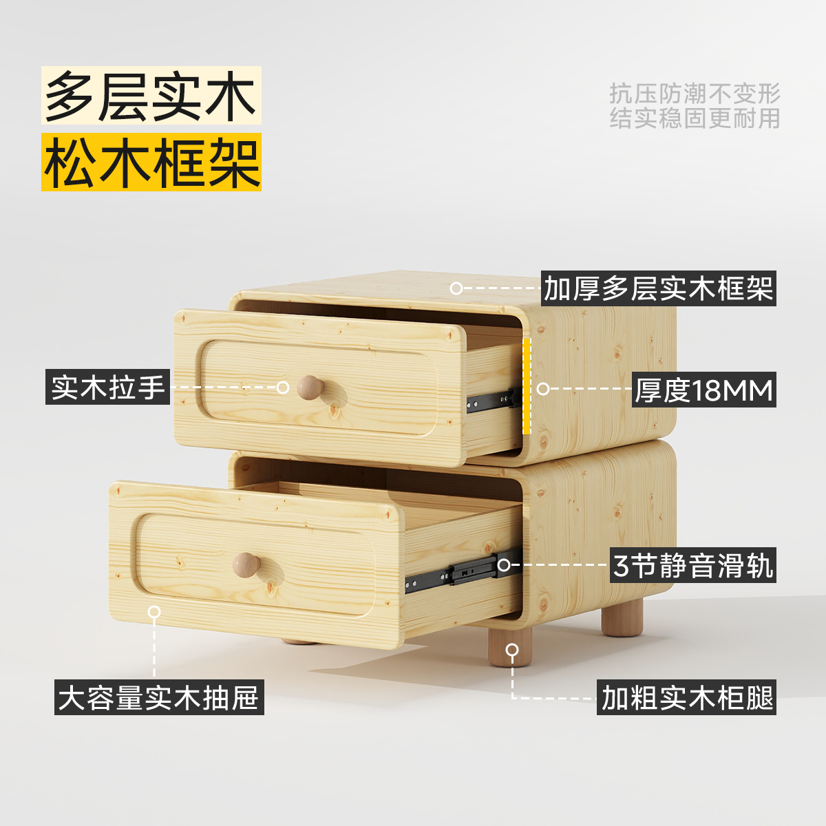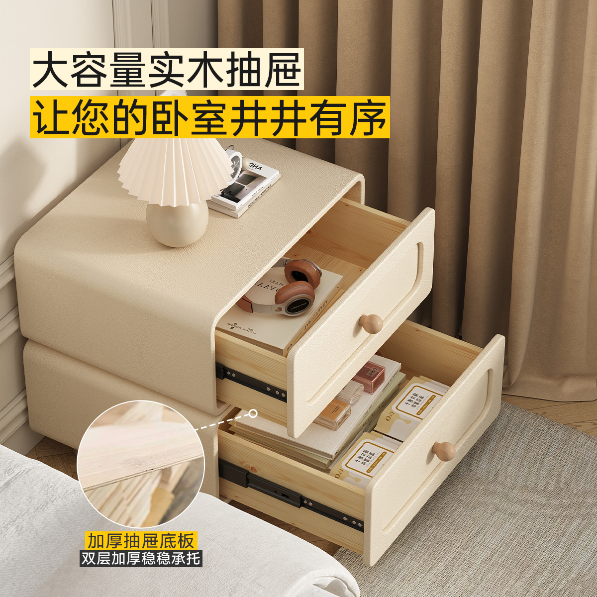 奶油风实木床头柜家用卧室小型轻奢高级感床边收纳柜子2025爆款