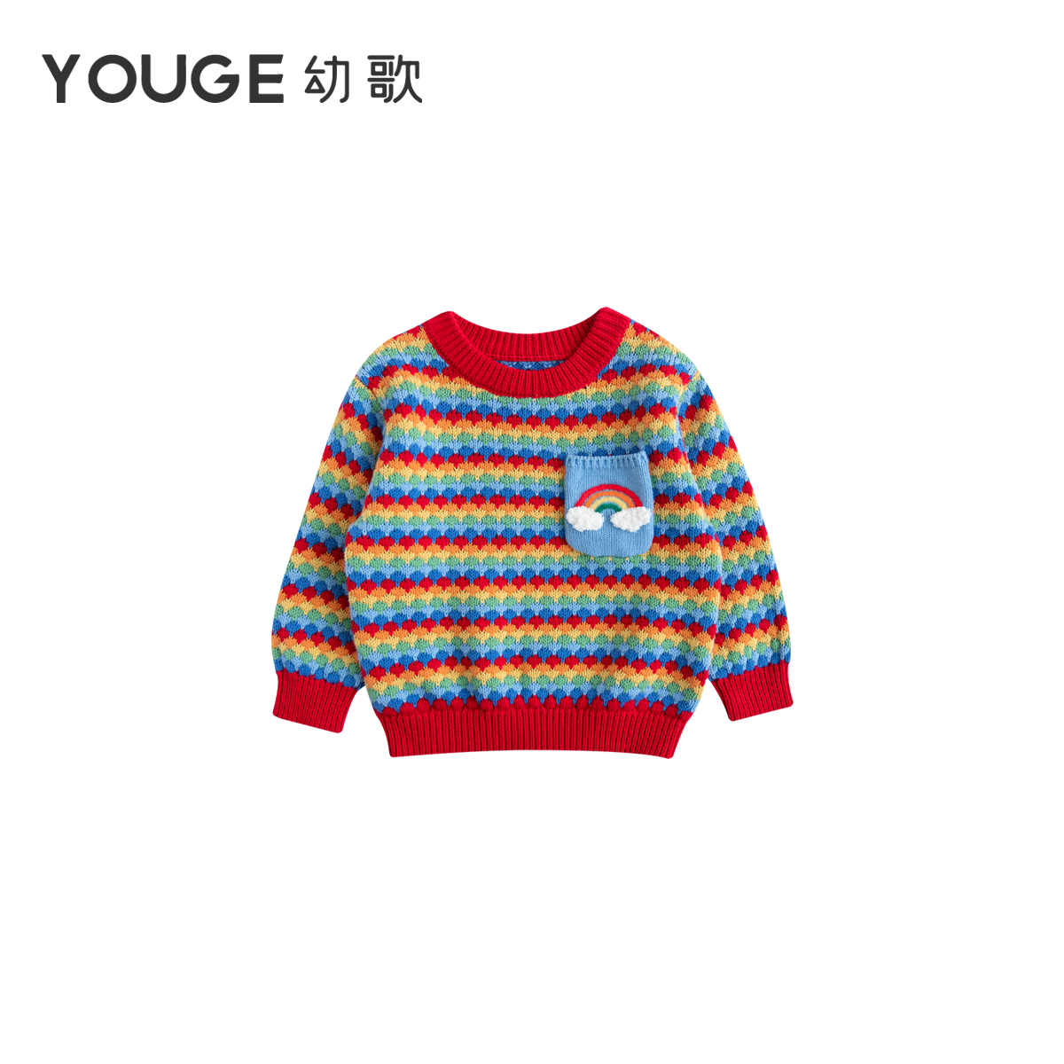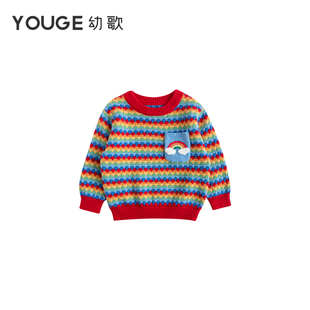 女秋季 条纹针织线开衫 乐町短款 双开拉链立体小兔提花毛衣 预
