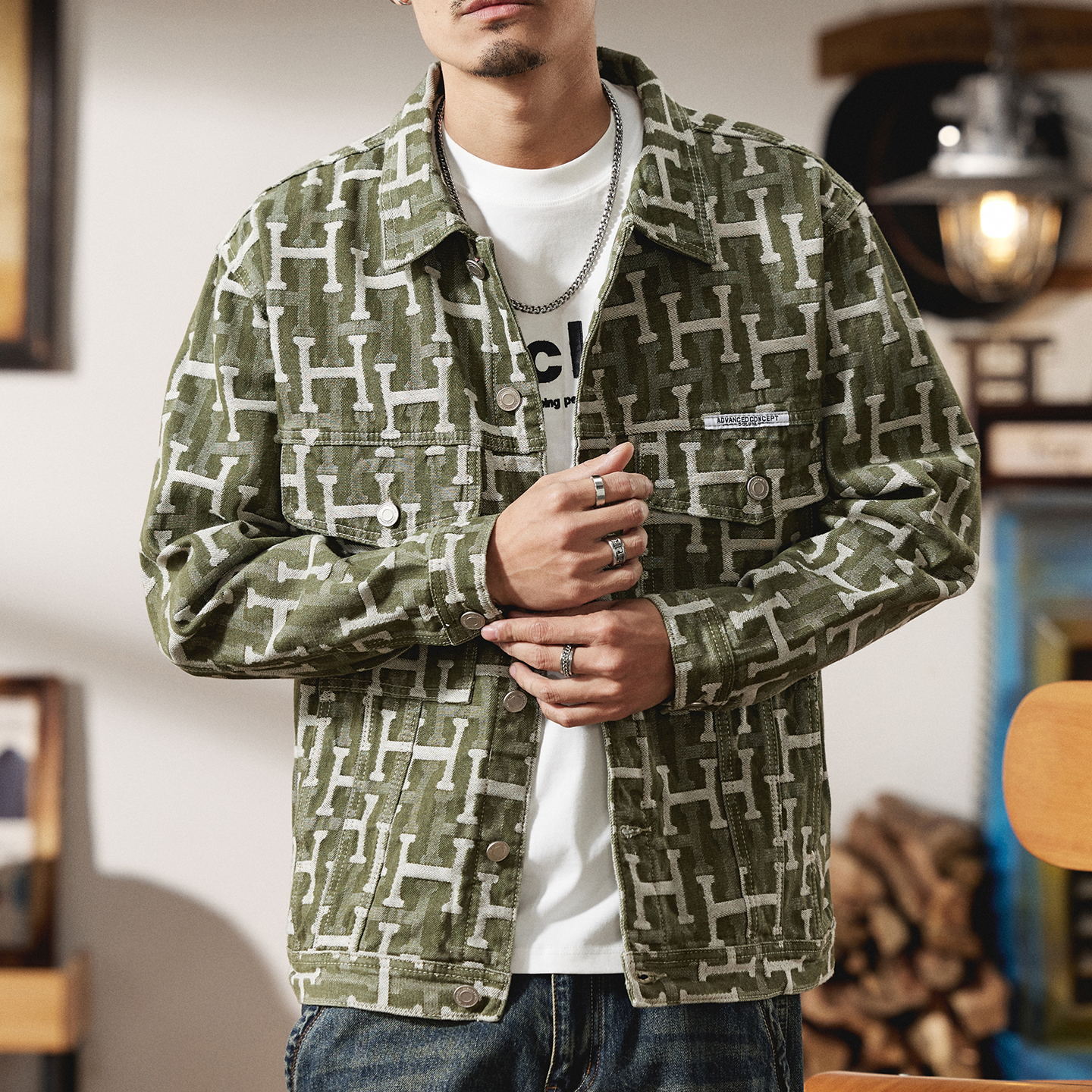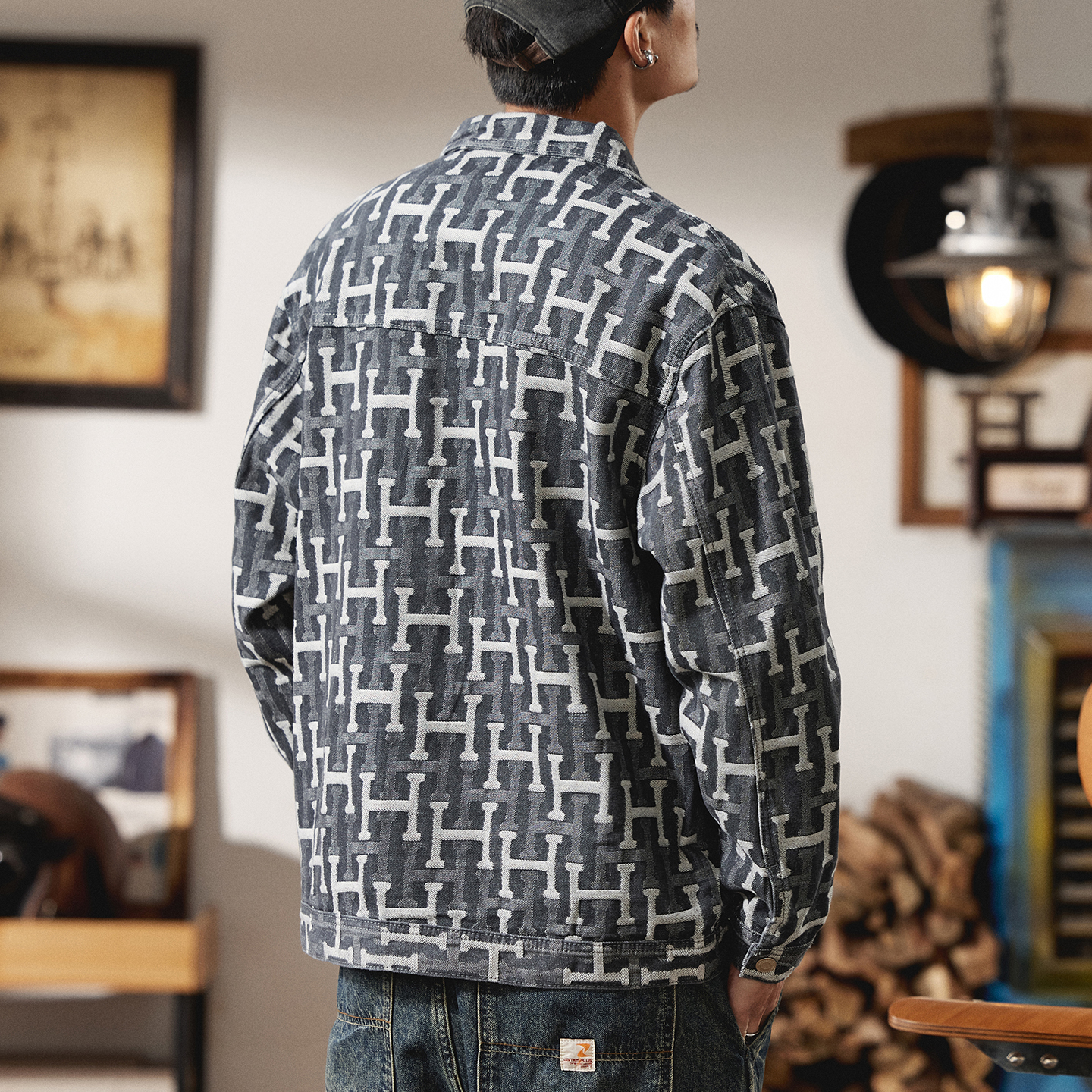 夹克上衣 潮牌美式 李一桐同款 INXXAPYD复古做旧牛仔外套男女同款