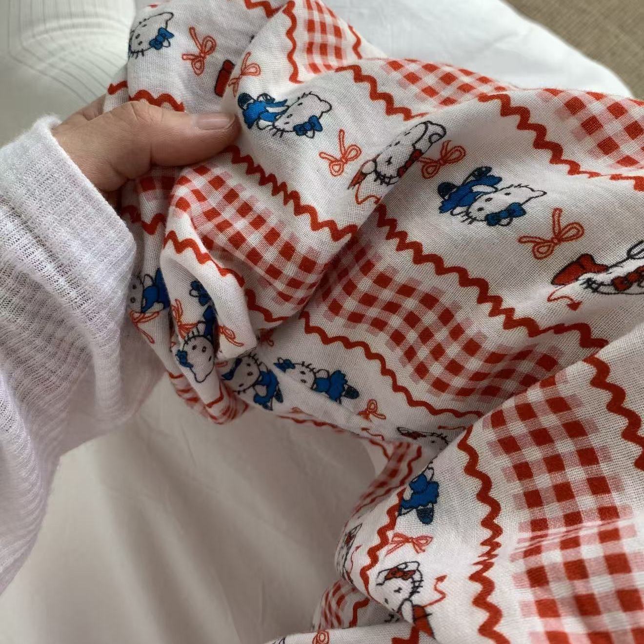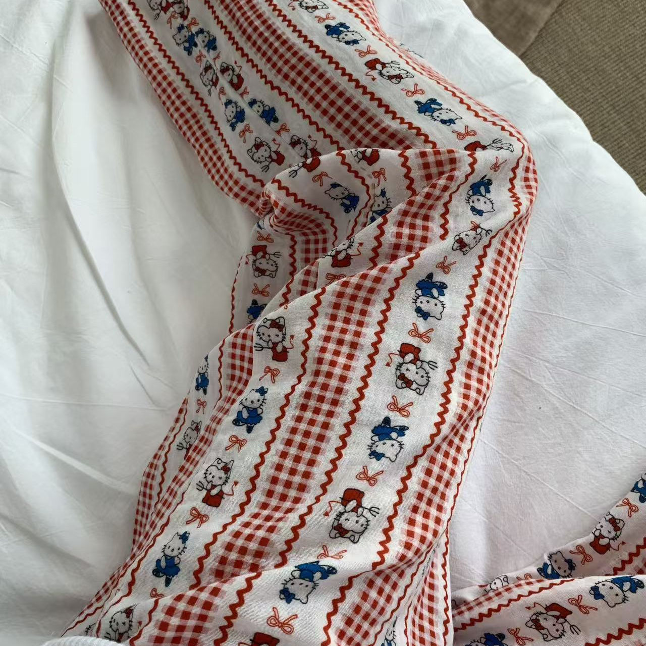 可爱俏皮条纹芭蕾Kitty全棉双层纱长裤 家居遛弯外出 宽松舒适睡裤