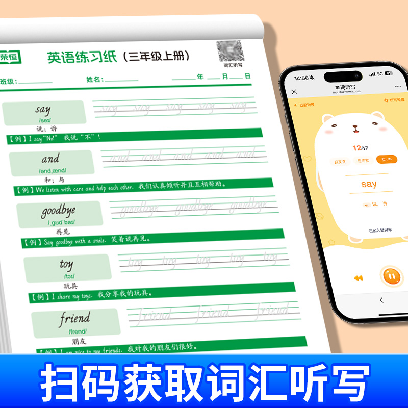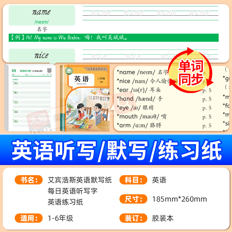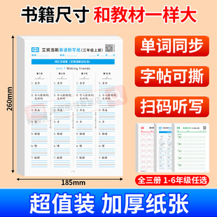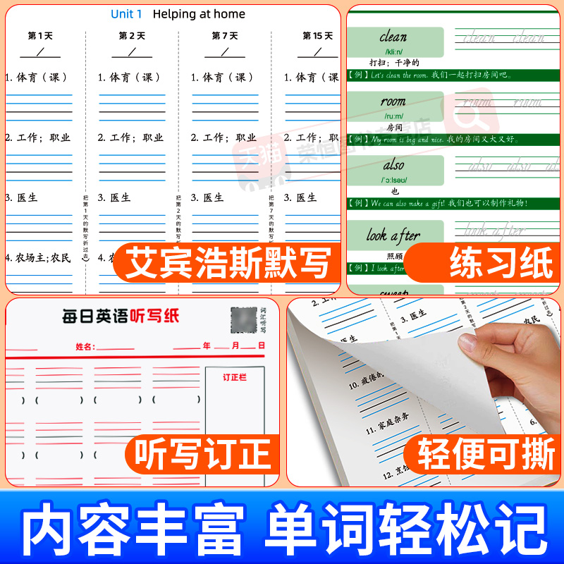 荣恒三年级英语单词默纸写本听写本艾宾浩斯人教版 活页默写课本同步手撕字帖小学三四五六年级上下册背神器语法作业本英语听力天天