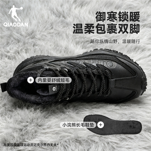 乔丹加绒防水棉鞋 皮面运动马丁靴子 男高帮户外徒步登山越野冬新款