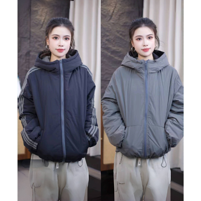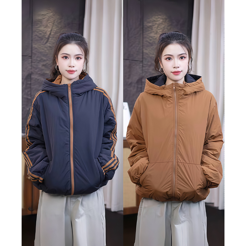 2025秋冬新款 百搭两面穿连帽棉服女显瘦减龄休闲外套洋气棉衣 时尚