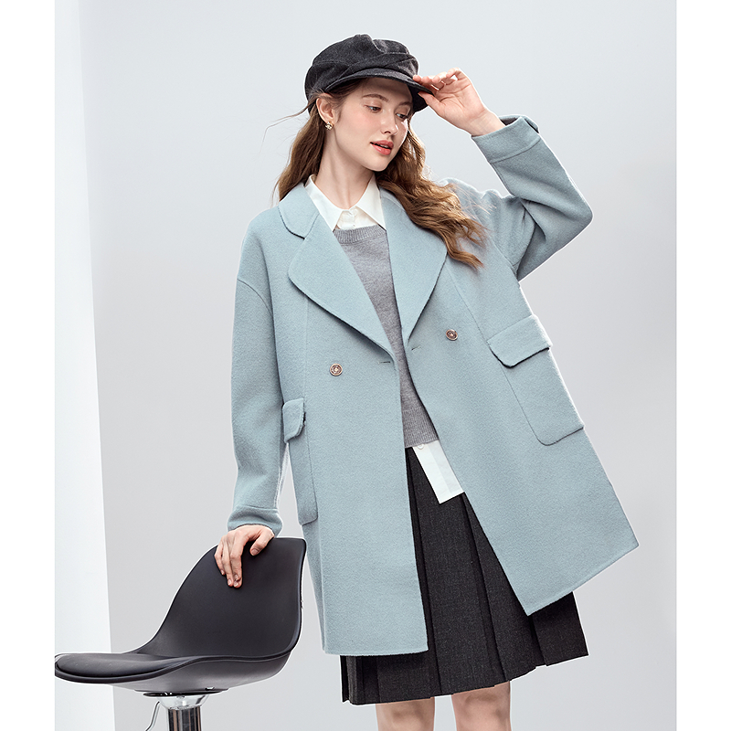 新款 2025年冬季 加厚呢子大衣 绵羊毛呢外套女中长款 betu百图经典