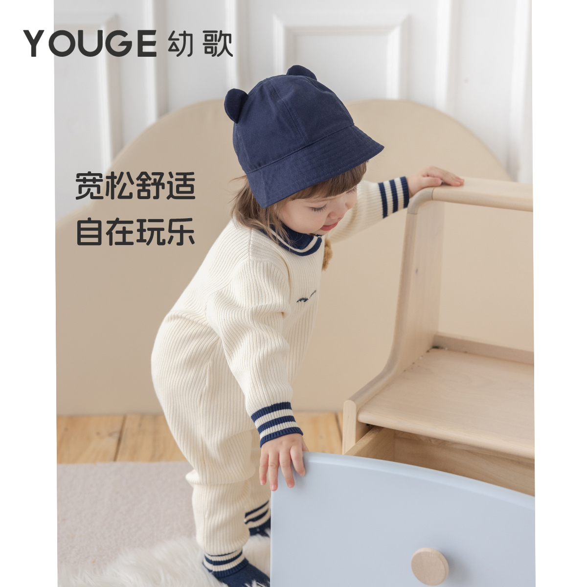 纯棉娃娃领爬服新生儿亲肤柔软连体衣潮 新款 YOUGE幼歌 婴幼儿秋季