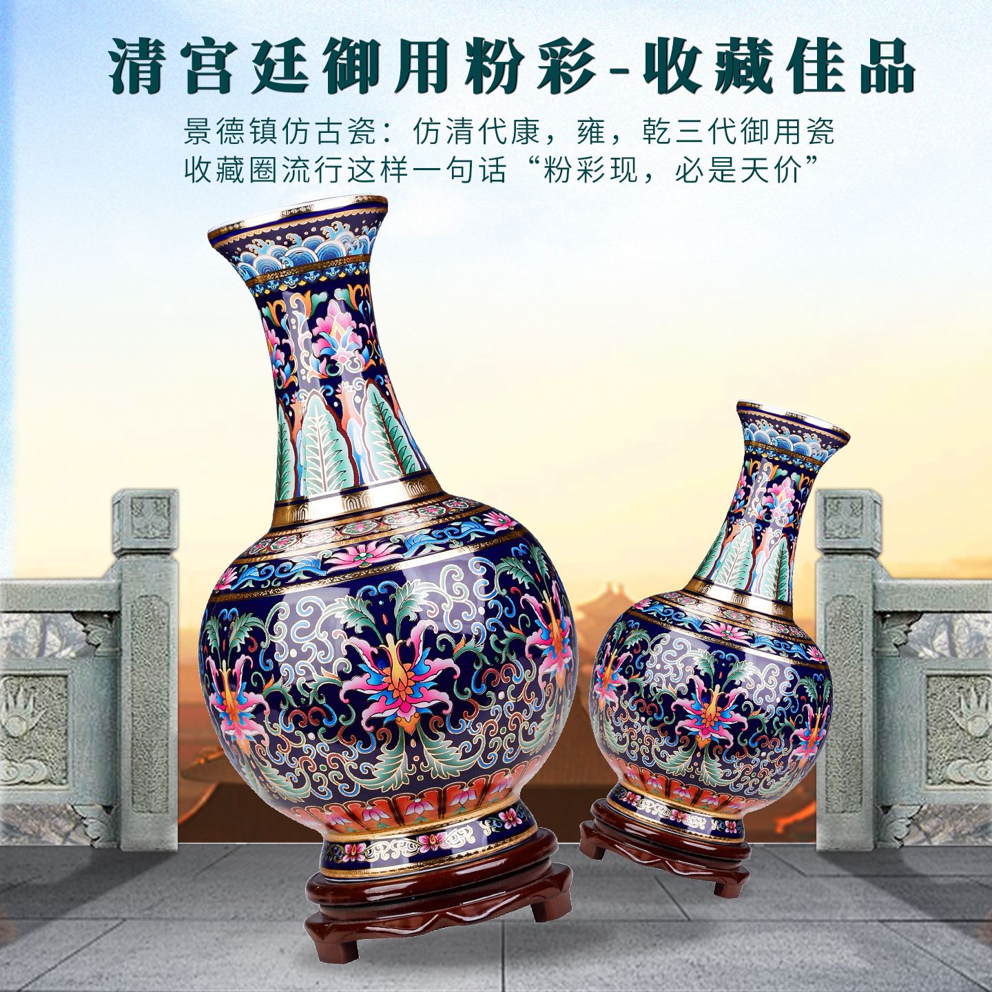 掐丝珐琅彩景泰蓝陶瓷花瓶一对高级感客厅酒柜轻奢摆件景德镇瓷器