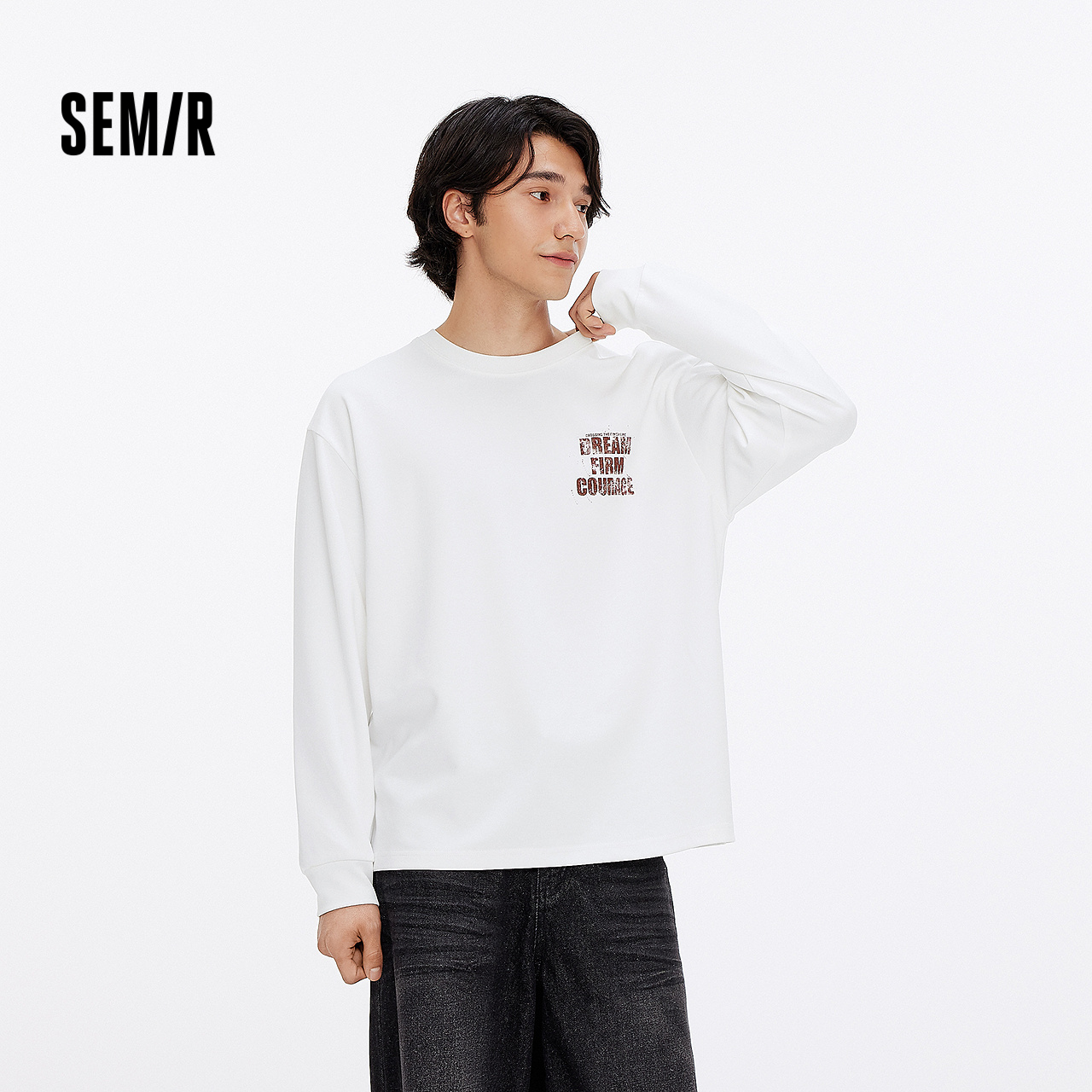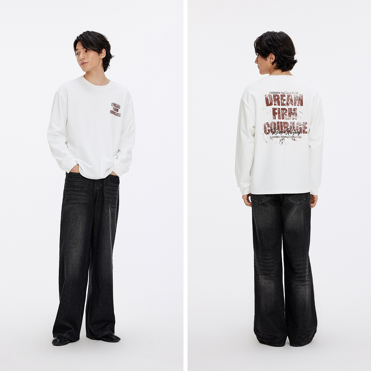 2025新款 商场同款 打底衫 T恤男秋季 做旧街头字母印花上衣 森马长袖