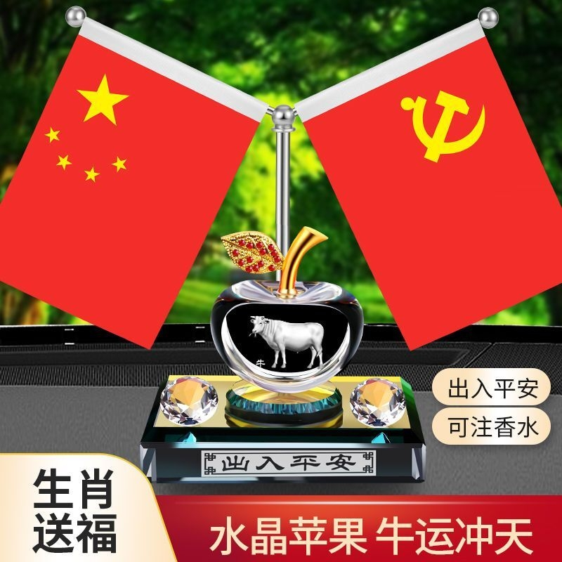 车载香水五星国旗党旗摆台汽车中控台小红旗内饰品高档办公室摆件