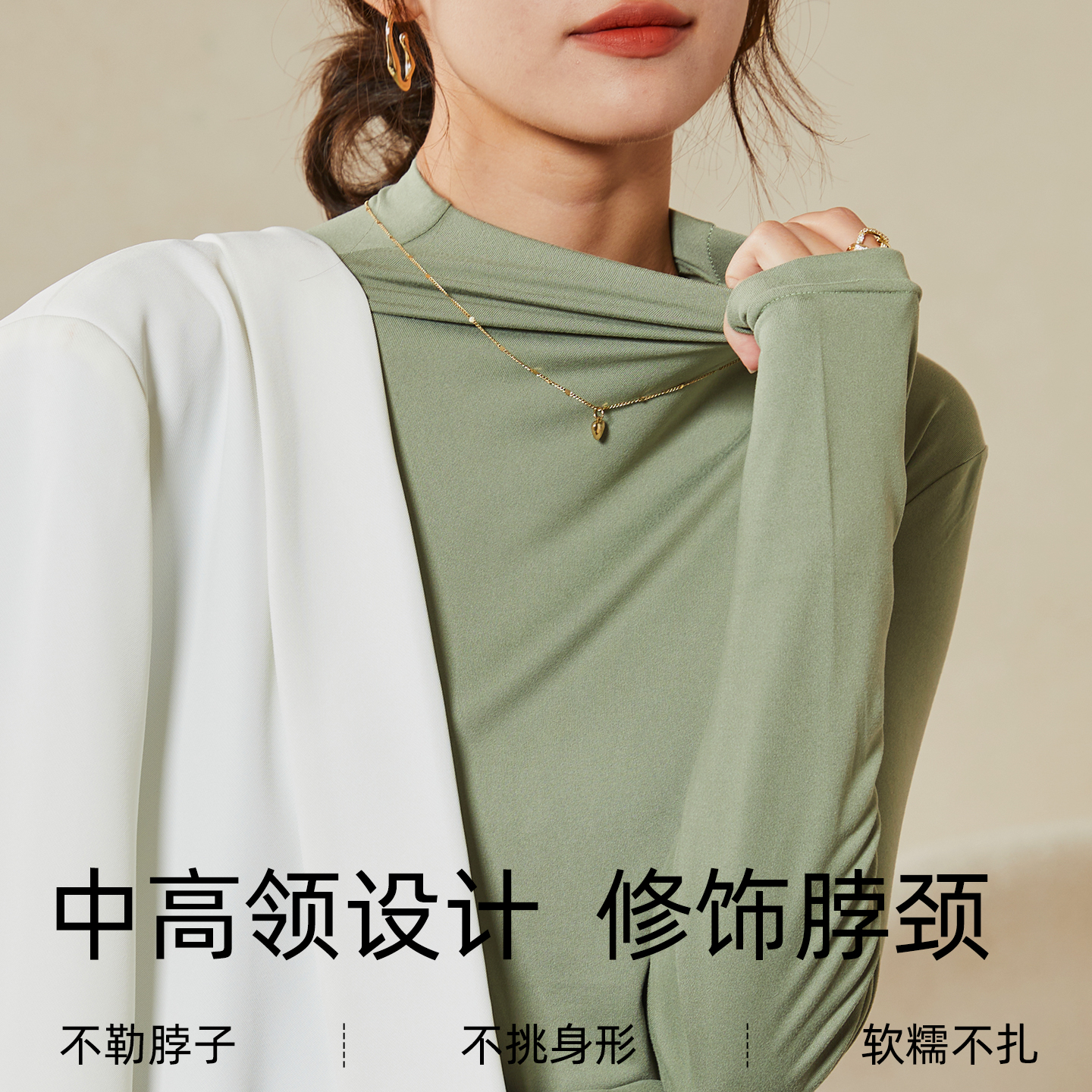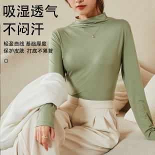 T恤轻薄打底上衣 纯色内搭修身 半高领高弹长袖 保暖衣女春秋冬新款