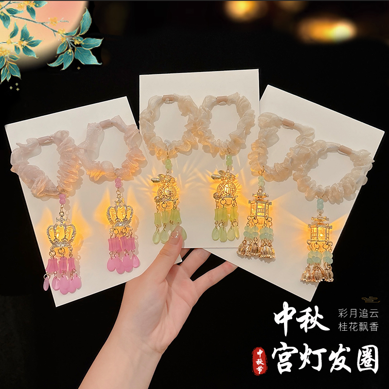 中秋节会发光 宫灯发圈儿童古风流苏灯笼发绳小女孩国风汉服头饰