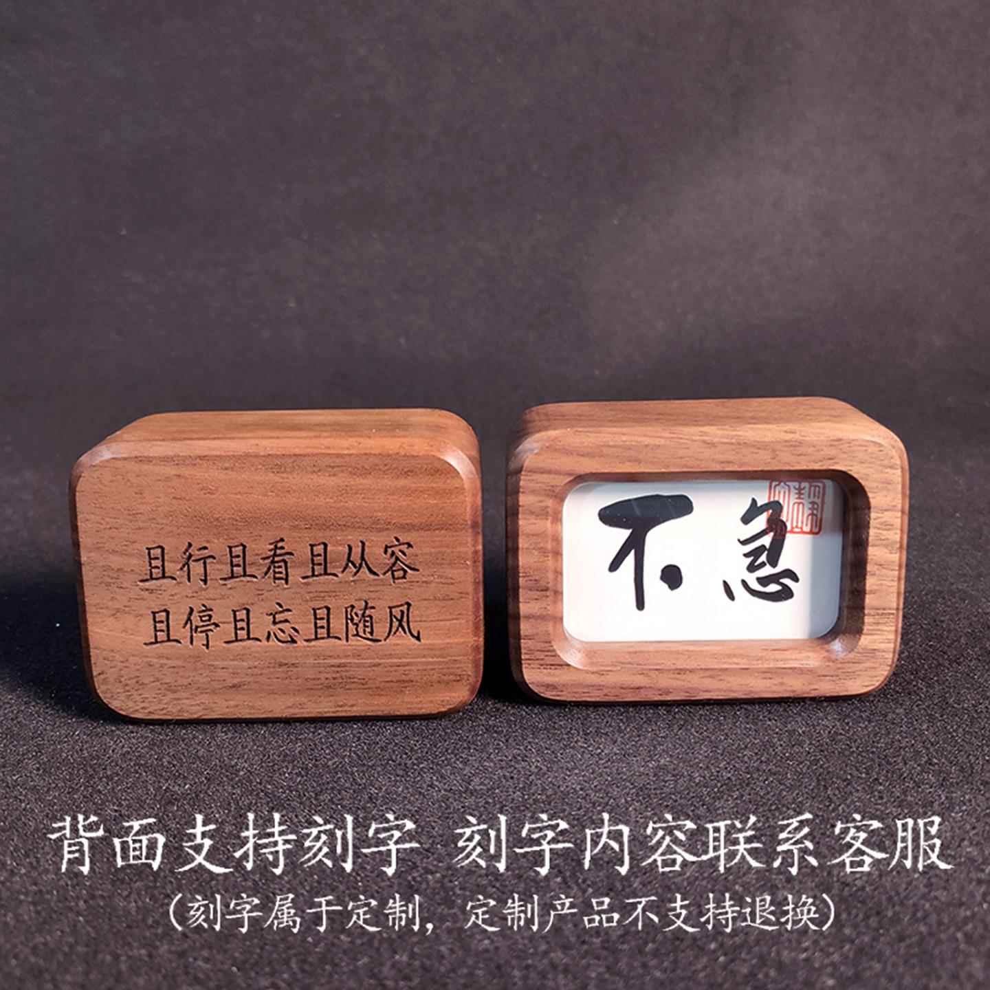 创意黑胡桃实木相框汽车中控台饰品文创摆台不急车载摆件礼物定制