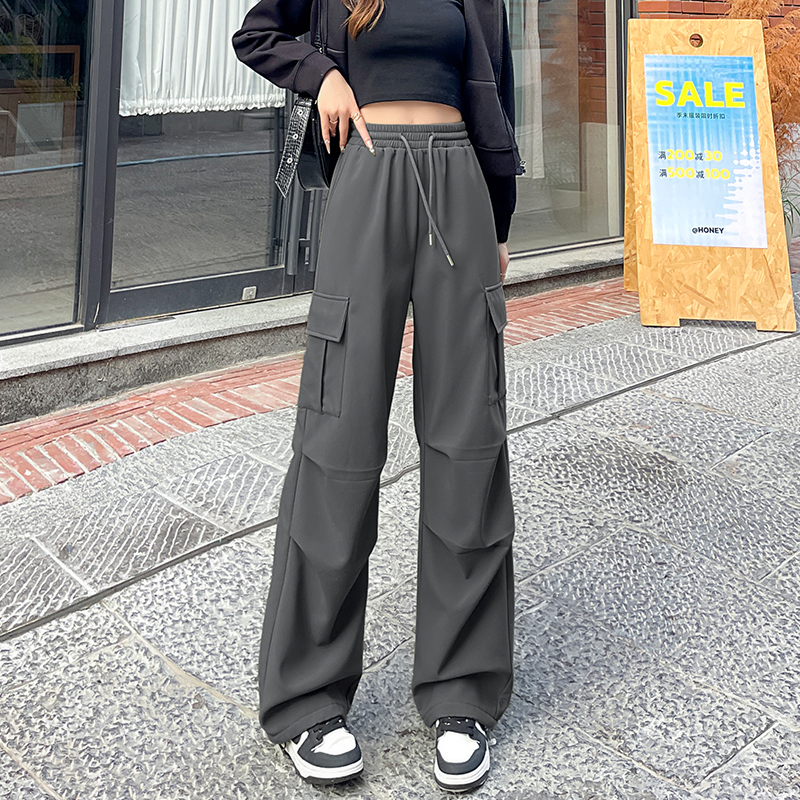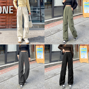 裤 休闲裤 女2025新款 秋冬季 加绒运动裤 KMV真维斯黑色软壳直筒工装