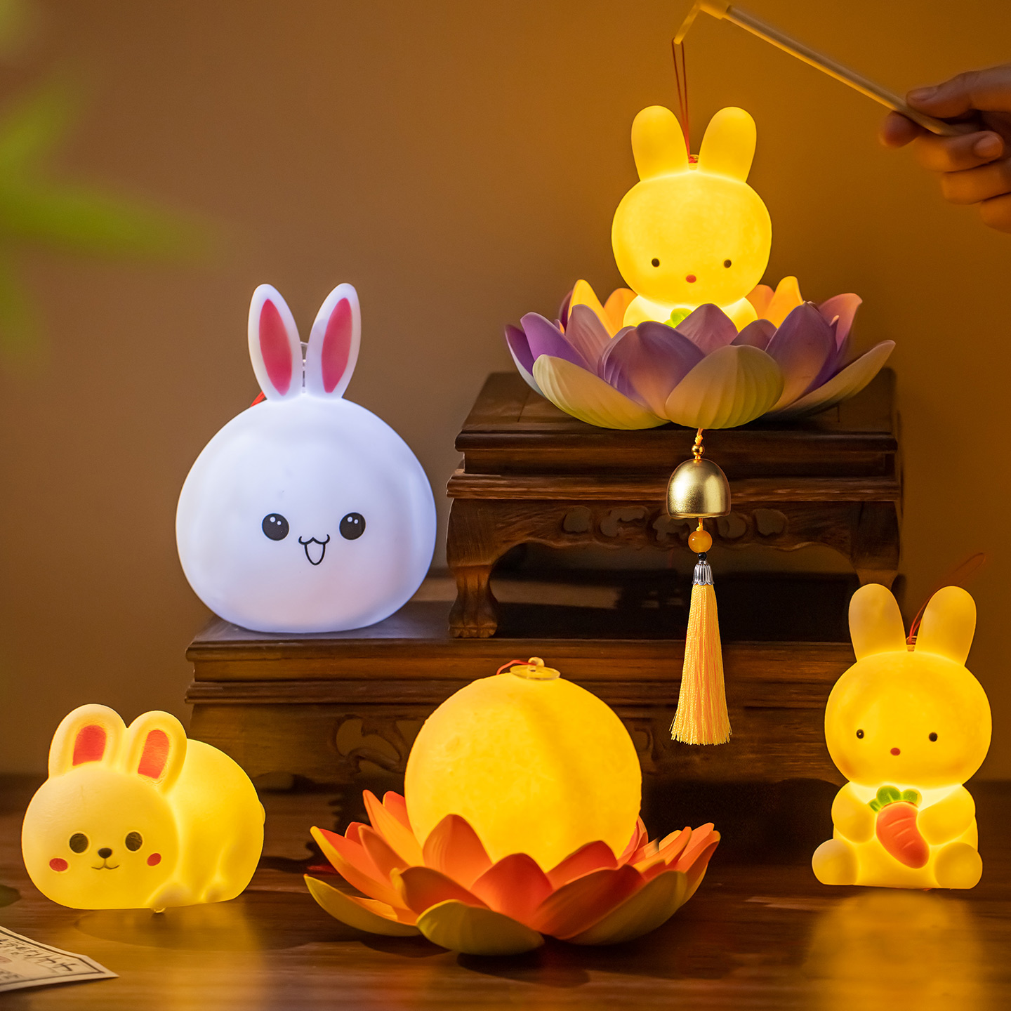 中秋节新款 手提兔子灯笼儿童手工diy材料国风创意荷花莲花灯玩具5