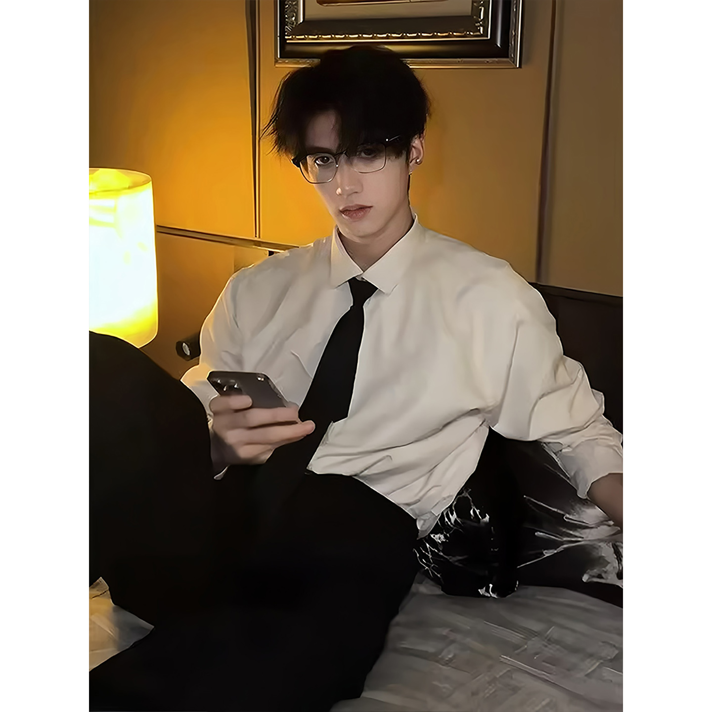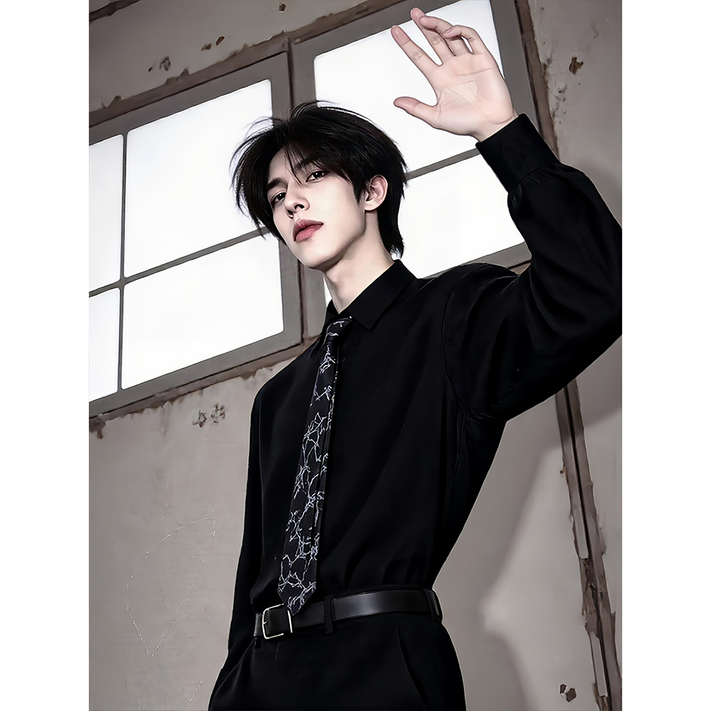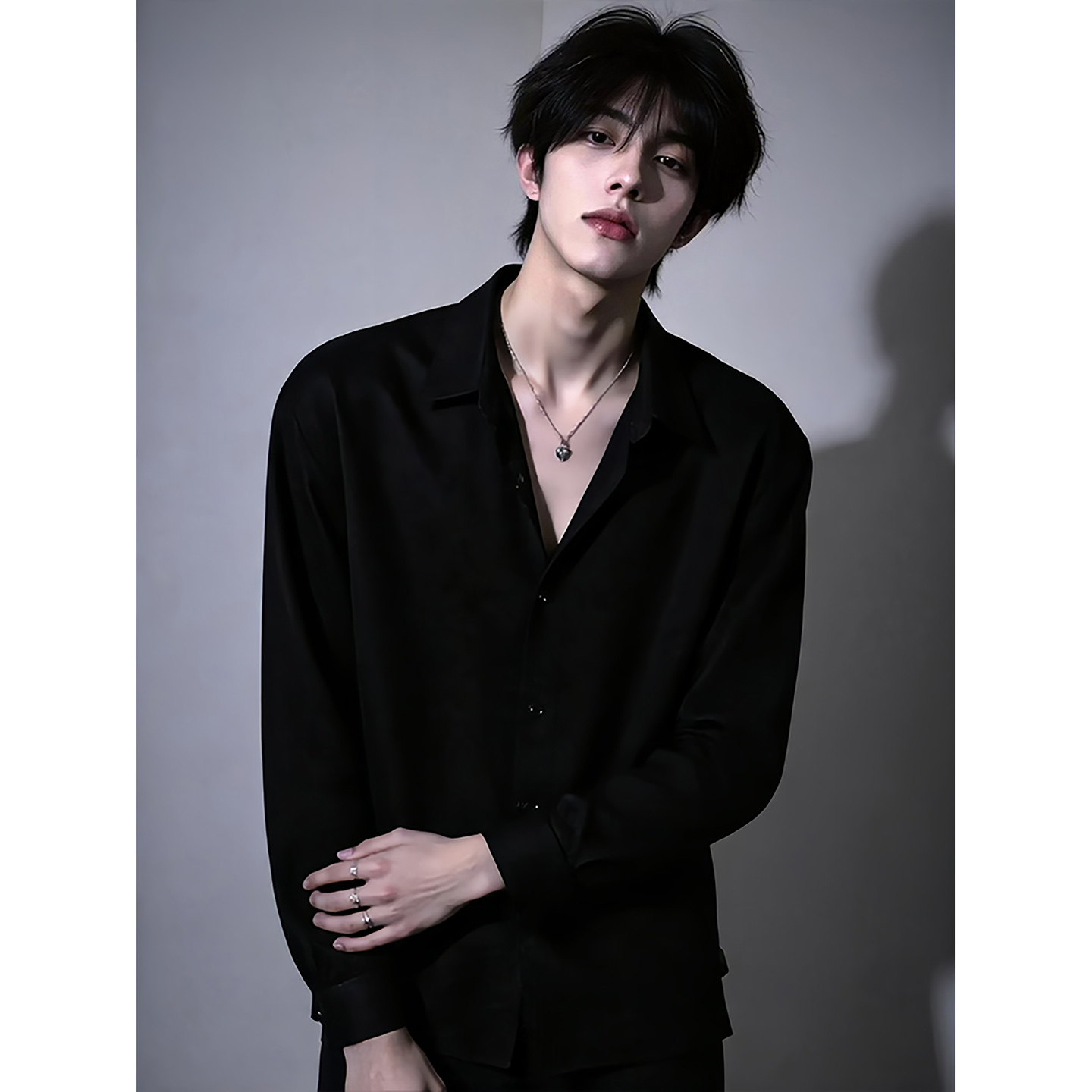 内搭衬衣英伦风外套 男高级感痞帅那不勒斯西装 禁欲系黑色长袖 衬衫