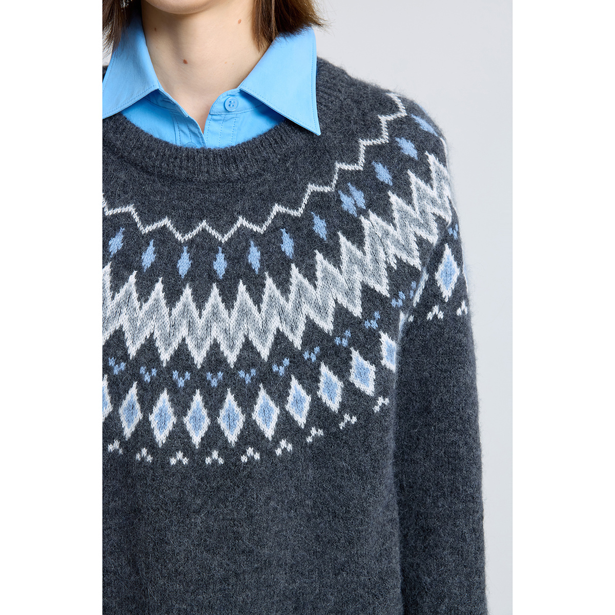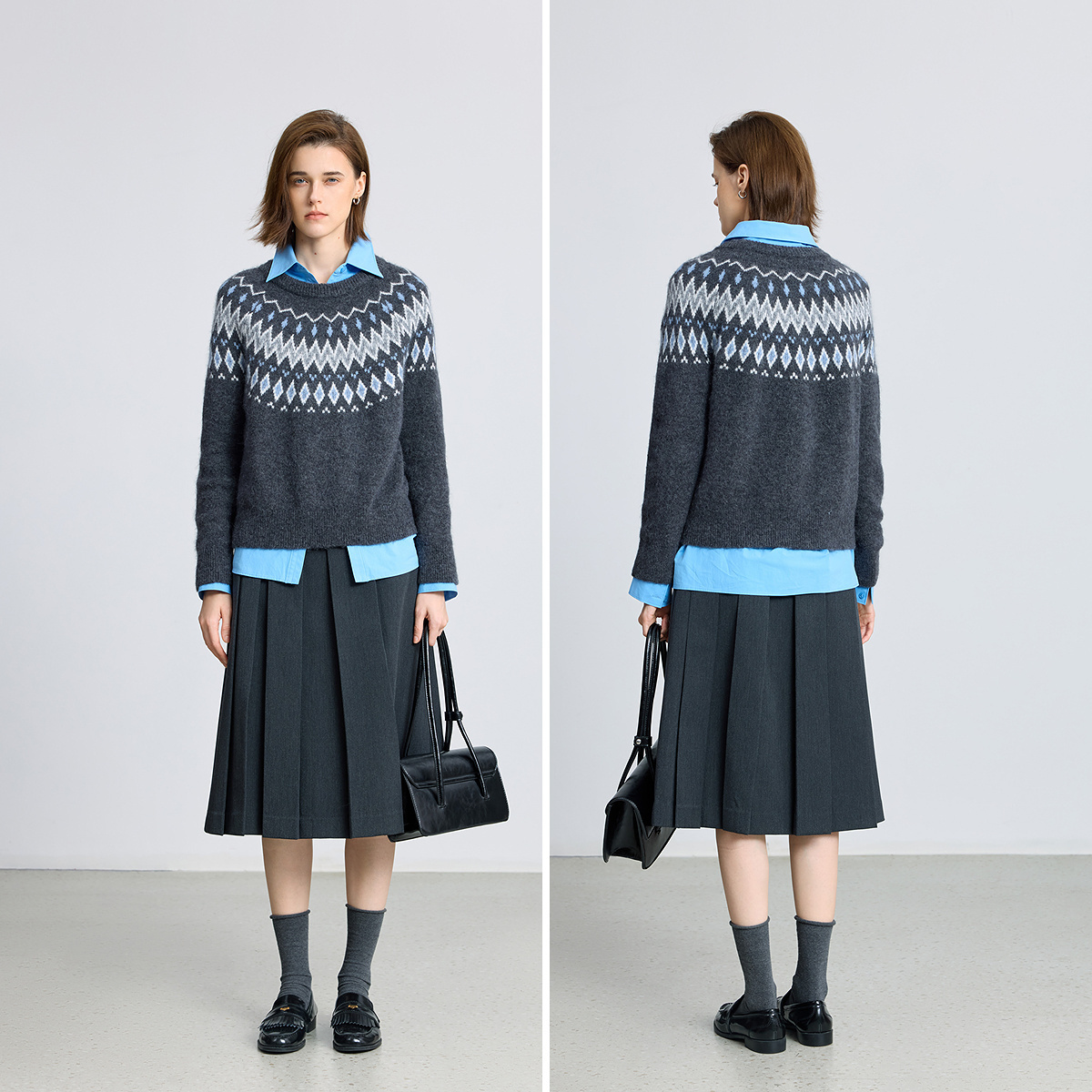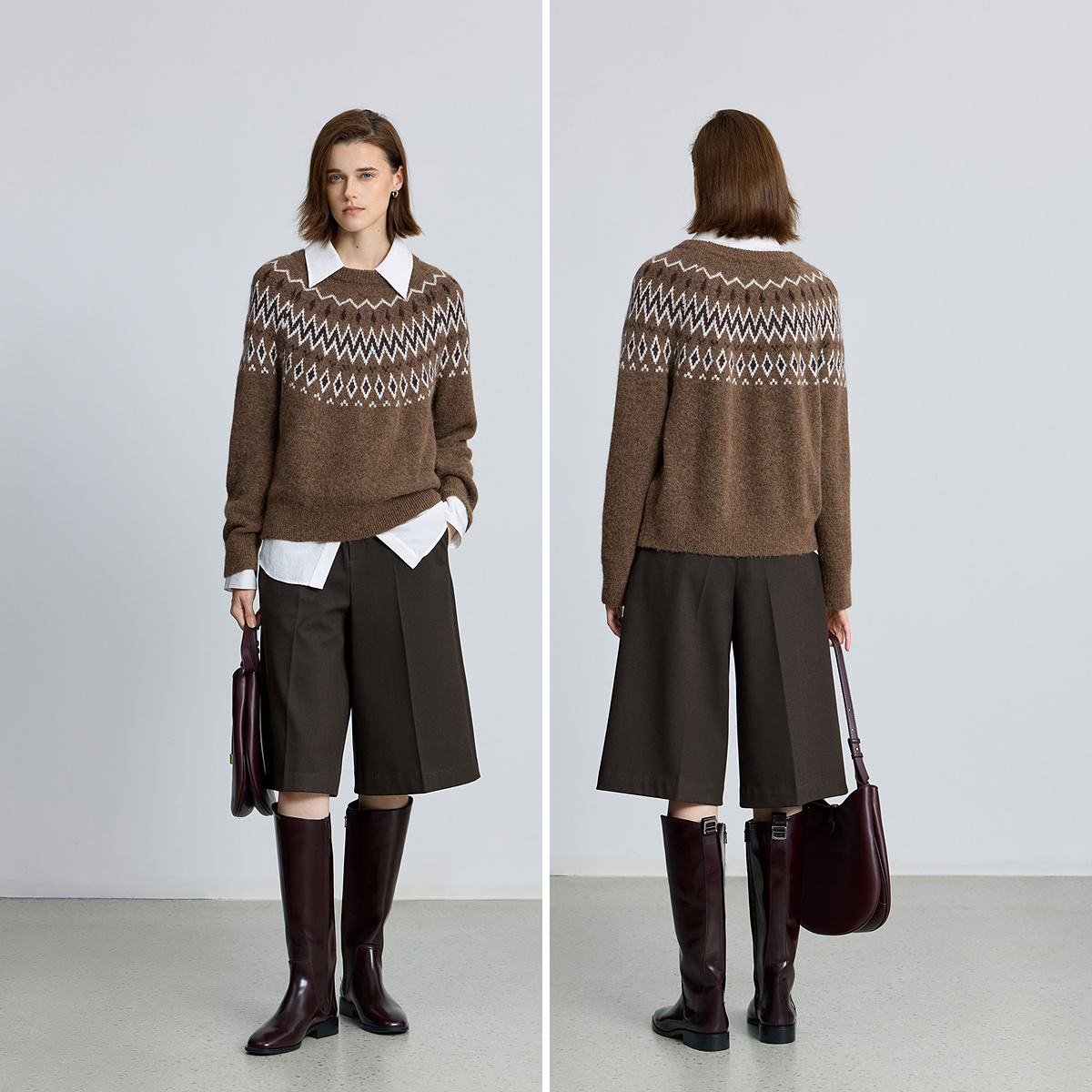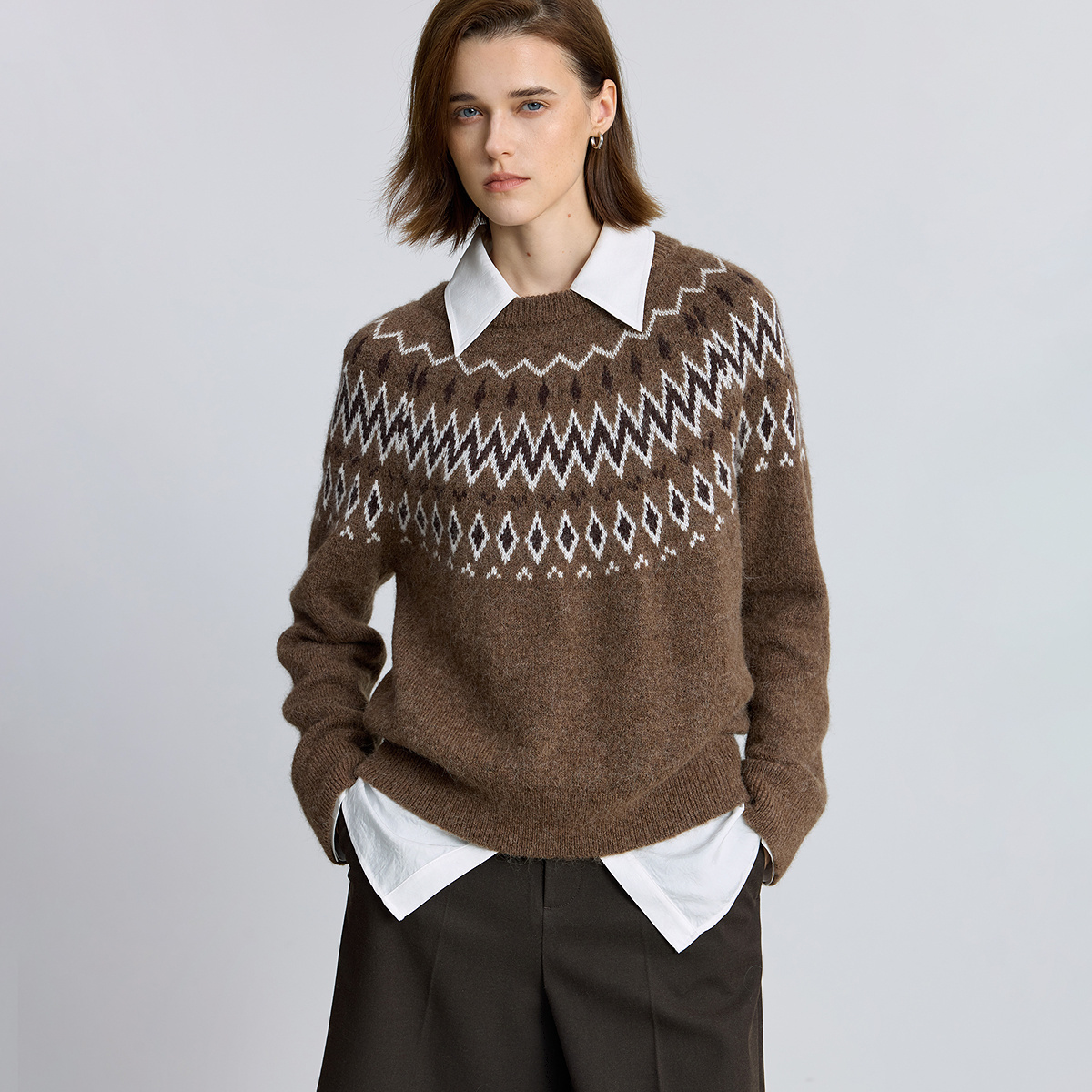 LILY2025冬新款 毛衣女 含羊毛羊驼毛兔毛复古费尔岛提花圆领针织衫
