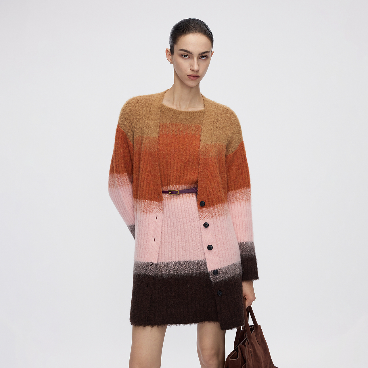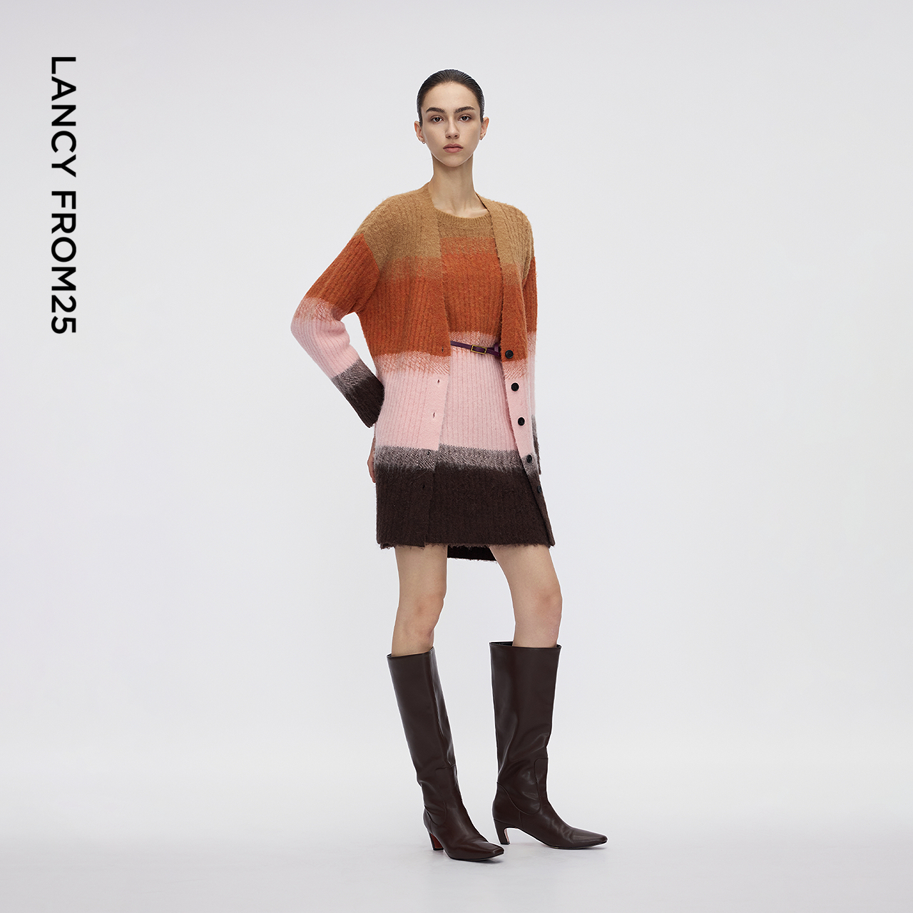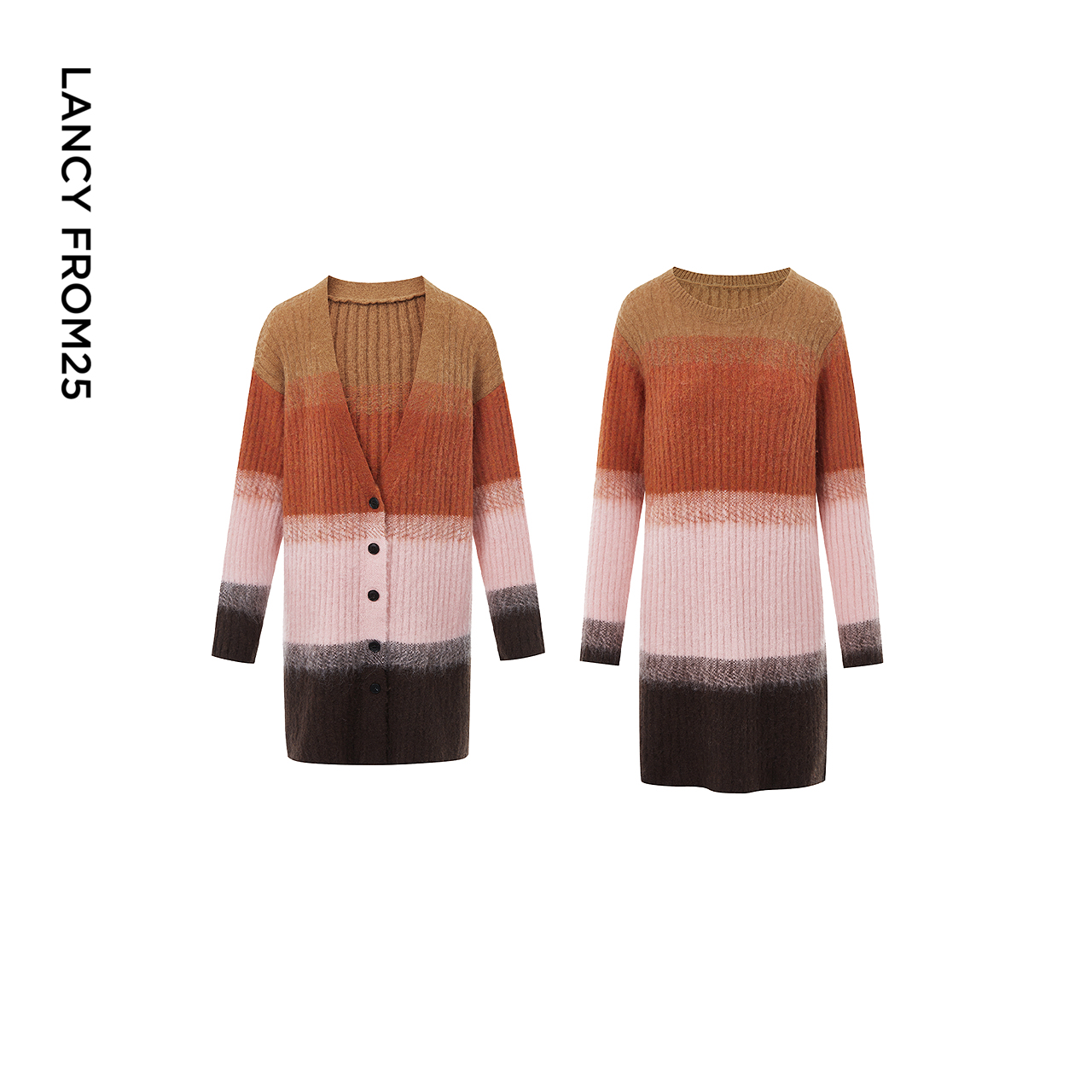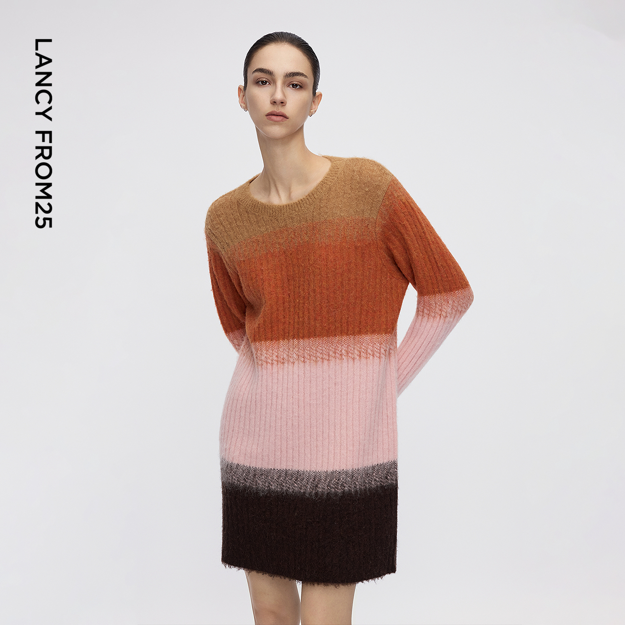 女 新款 朗姿撞色条纹针织衫 连衣裙高级感气质百搭毛衣2025年冬季