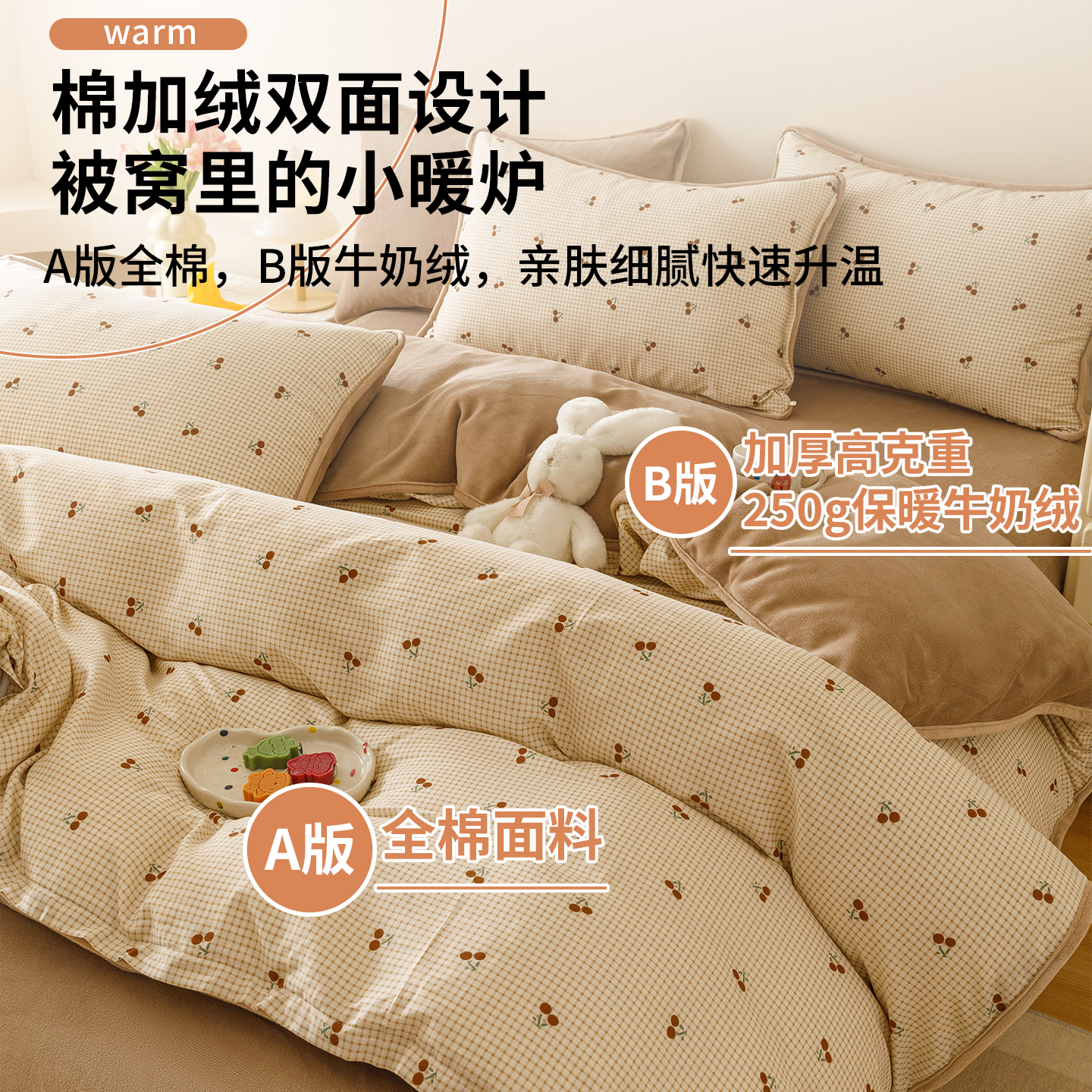 洁丽雅冬季 加厚牛奶绒被套单件加绒法兰绒被罩150x200冬天珊瑚绒